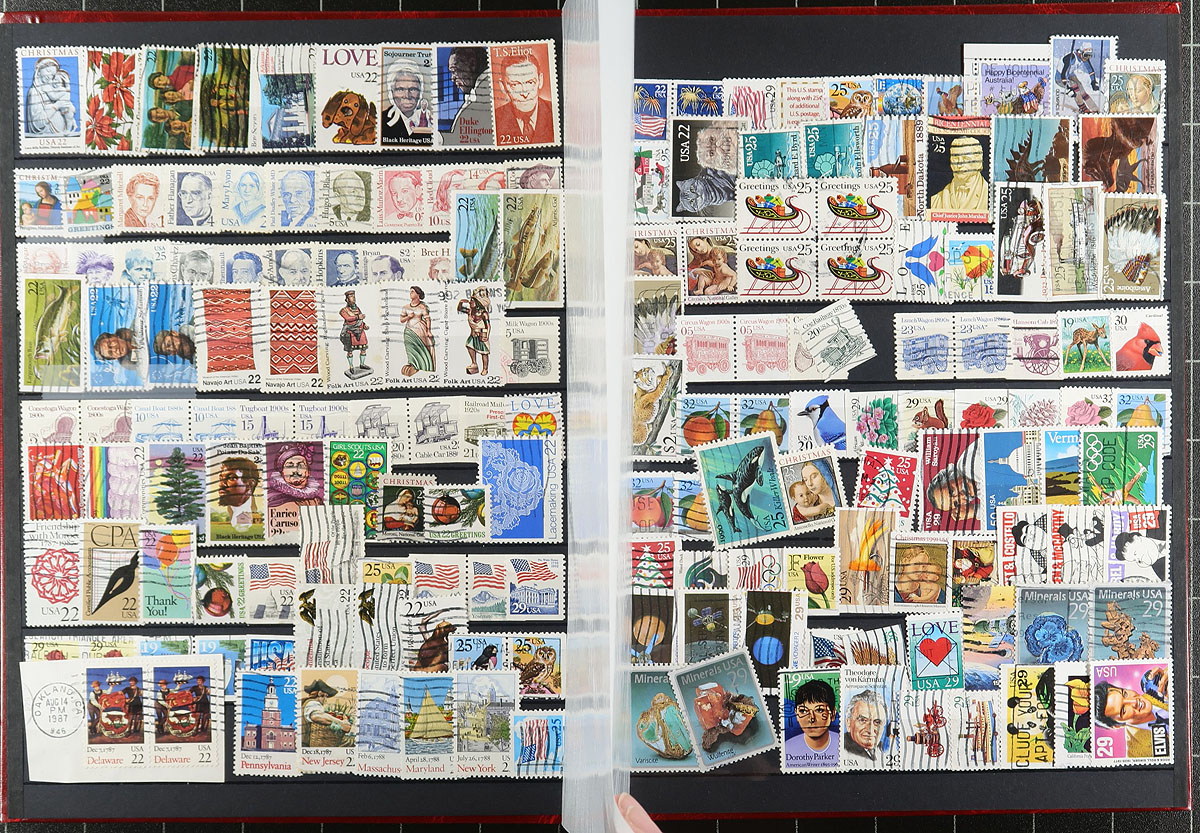 A three-part collector’s holding that includes USA, Marshall Islands, Palau and (somewhat out of place) Romania! Neatly arranged and identified by the owner in three distinct sections / albums. Section A consists of US, Marshall Islands and Palau , with USA having 649 different stamps, mostly used 1870-1993. Section B consists of about 1560 different (2519 in total) stamps, mainly used including early facsimiles, blocks, precancels, "back of the book" and even one of the old-time "US Presidents" label sheet 1869-2017 (expect mixed condition in the earlier material). Lastly, section C is a 32-page Lighthouse stockbook (these retail for over $50 alone) with USA and Romania, with USA having 1956 different stamps, including two booklets, 25x mint and used blocks and 2x Hawaii, and then Romania with 596 different, mostly used and CTO from 1880-1980. A useful holding! Estimate =
