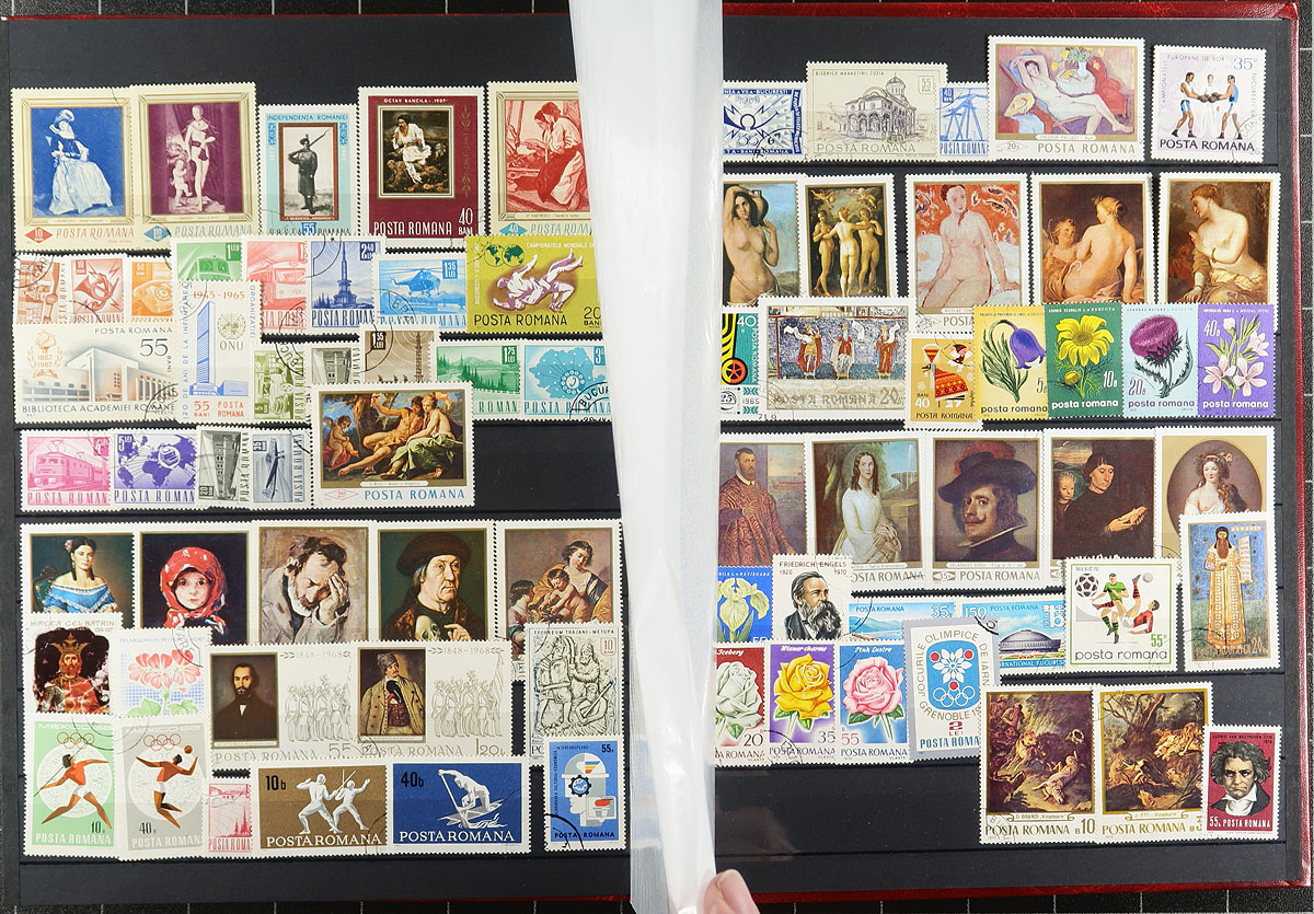 A three-part collector’s holding that includes USA, Marshall Islands, Palau and (somewhat out of place) Romania! Neatly arranged and identified by the owner in three distinct sections / albums. Section A consists of US, Marshall Islands and Palau , with USA having 649 different stamps, mostly used 1870-1993. Section B consists of about 1560 different (2519 in total) stamps, mainly used including early facsimiles, blocks, precancels, "back of the book" and even one of the old-time "US Presidents" label sheet 1869-2017 (expect mixed condition in the earlier material). Lastly, section C is a 32-page Lighthouse stockbook (these retail for over $50 alone) with USA and Romania, with USA having 1956 different stamps, including two booklets, 25x mint and used blocks and 2x Hawaii, and then Romania with 596 different, mostly used and CTO from 1880-1980. A useful holding! Estimate =