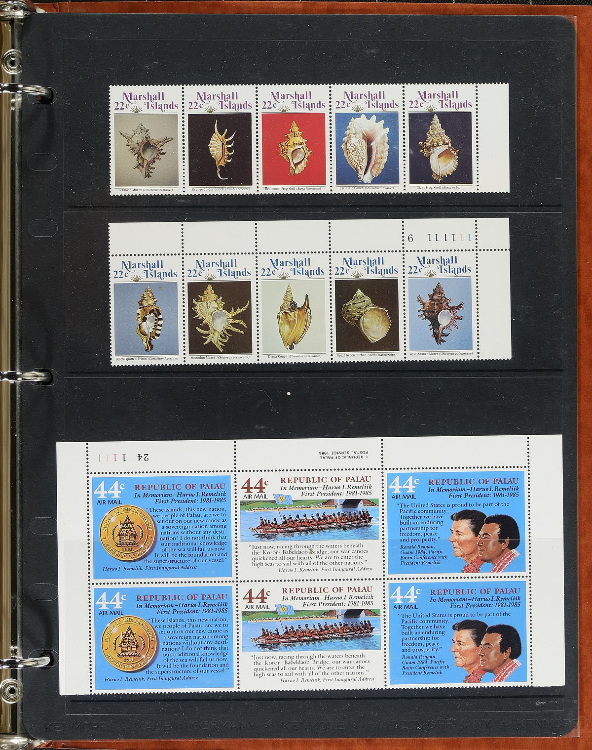 A three-part collector’s holding that includes USA, Marshall Islands, Palau and (somewhat out of place) Romania! Neatly arranged and identified by the owner in three distinct sections / albums. Section A consists of US, Marshall Islands and Palau , with USA having 649 different stamps, mostly used 1870-1993. Section B consists of about 1560 different (2519 in total) stamps, mainly used including early facsimiles, blocks, precancels, "back of the book" and even one of the old-time "US Presidents" label sheet 1869-2017 (expect mixed condition in the earlier material). Lastly, section C is a 32-page Lighthouse stockbook (these retail for over $50 alone) with USA and Romania, with USA having 1956 different stamps, including two booklets, 25x mint and used blocks and 2x Hawaii, and then Romania with 596 different, mostly used and CTO from 1880-1980. A useful holding! Estimate =