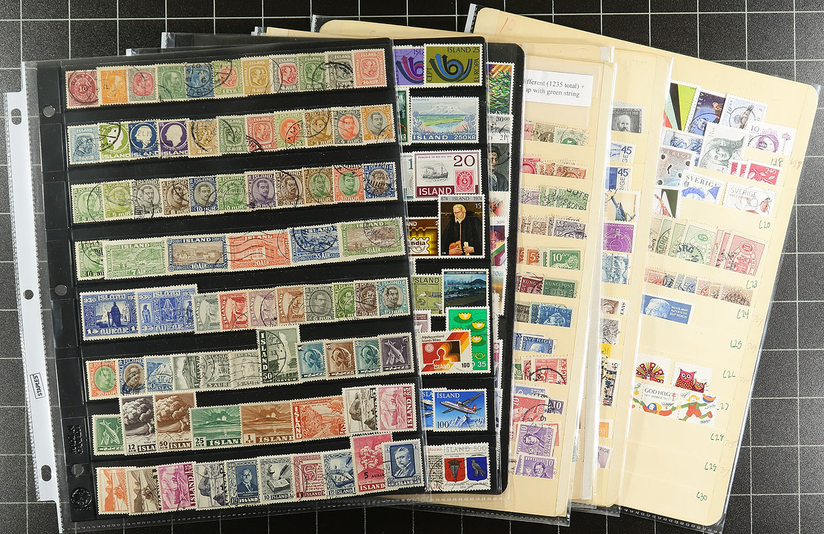 Scandinavian Delight. A duo of country collections, including Iceland with 353 different mostly used stamps from "earlies to 1999" arranged on stockpages. This if followed by an attractive mostly used collection of Sweden 1858-2010 with 1235 stamps (643 different) plus a half-sheet of Officials, on manila pages. Estimate =