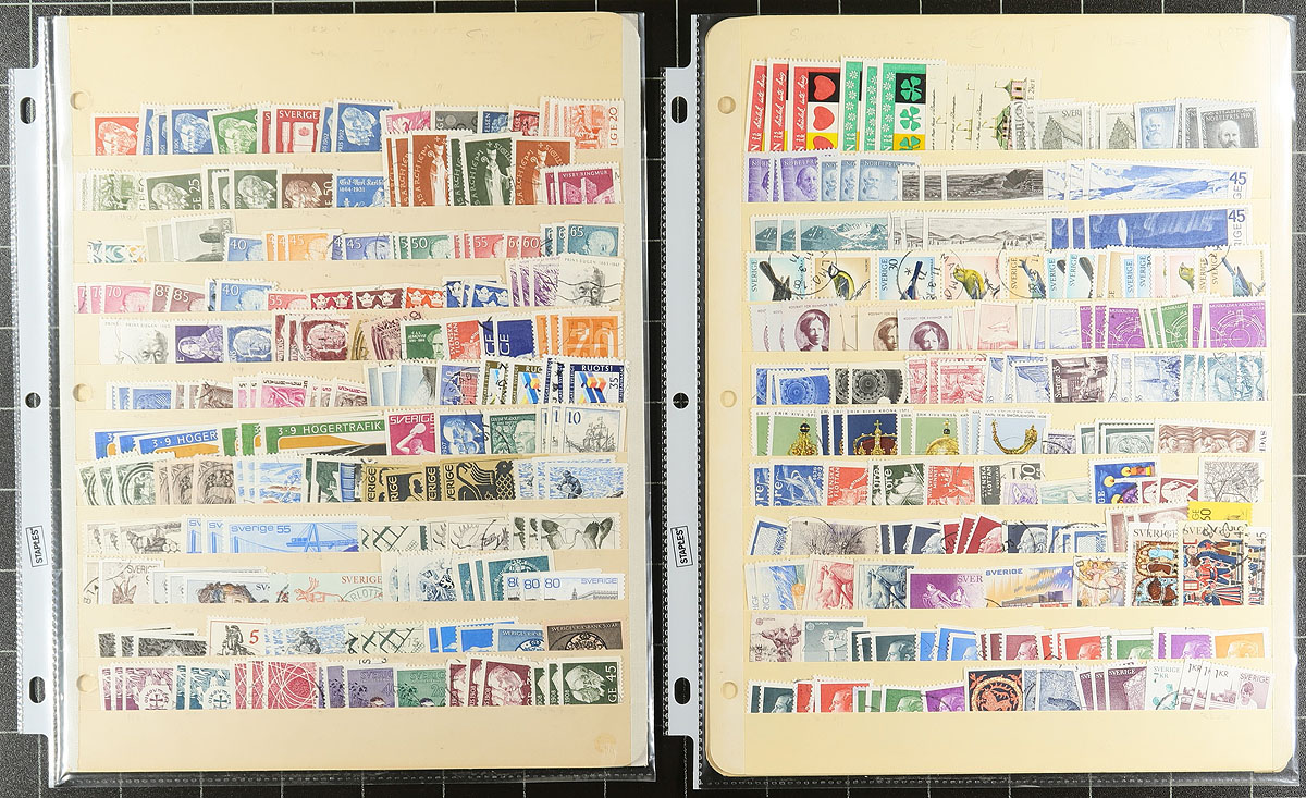 Scandinavian Delight. A duo of country collections, including Iceland with 353 different mostly used stamps from "earlies to 1999" arranged on stockpages. This if followed by an attractive mostly used collection of Sweden 1858-2010 with 1235 stamps (643 different) plus a half-sheet of Officials, on manila pages. Estimate =