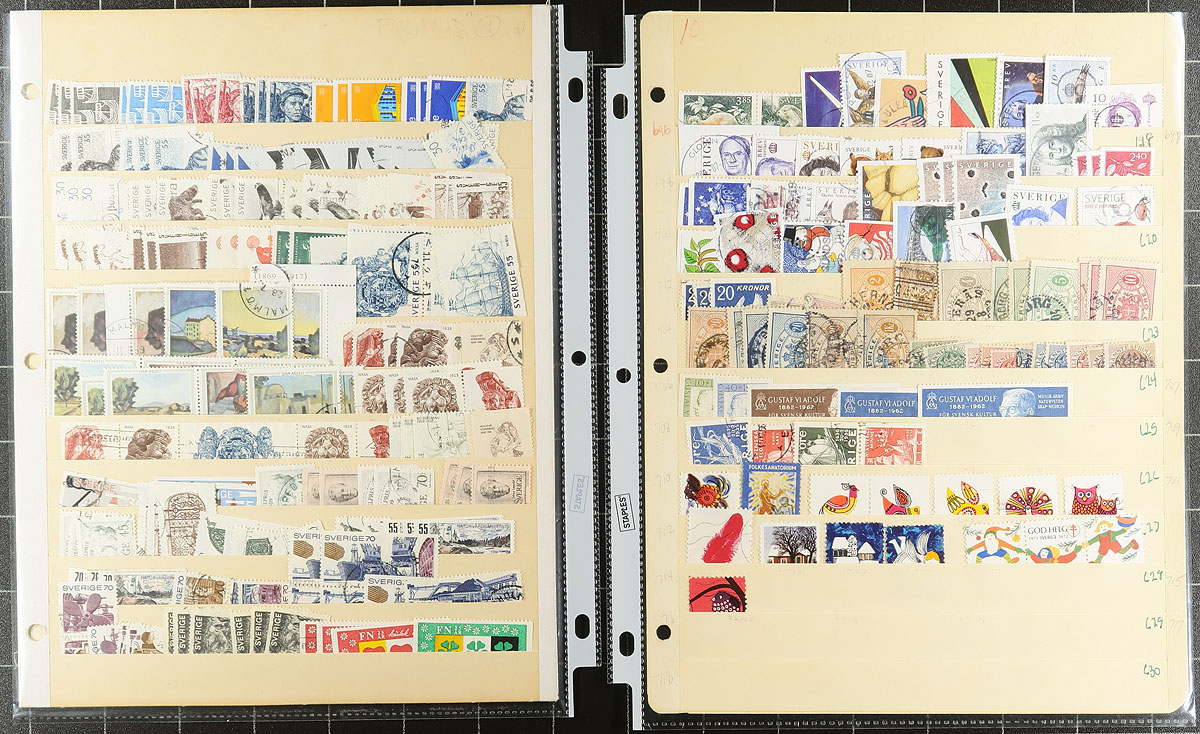 Scandinavian Delight. A duo of country collections, including Iceland with 353 different mostly used stamps from "earlies to 1999" arranged on stockpages. This if followed by an attractive mostly used collection of Sweden 1858-2010 with 1235 stamps (643 different) plus a half-sheet of Officials, on manila pages. Estimate =