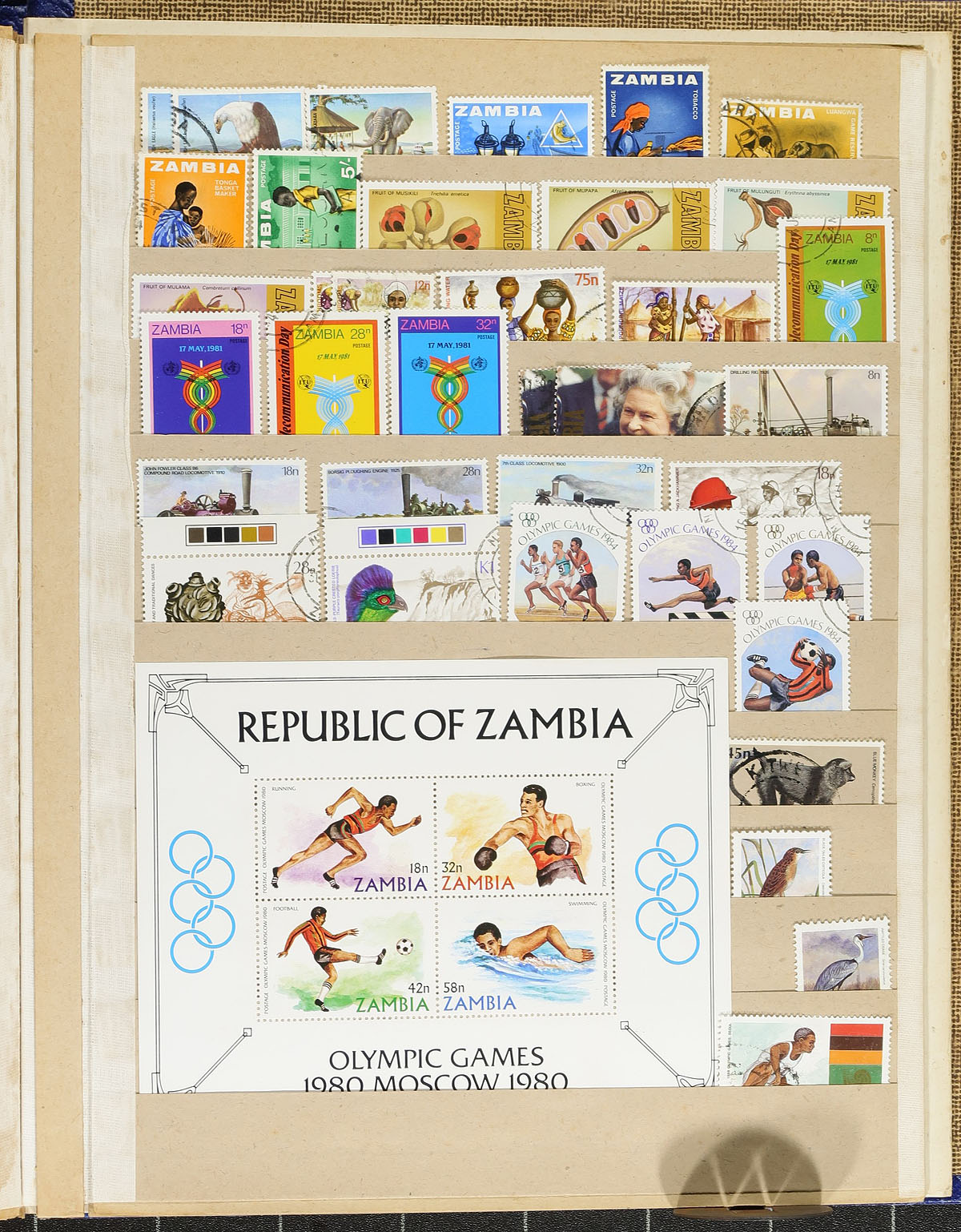 An interesting collector’s holding of British Commonwealh. Starting with a blue springback album with British Central and Southern Africa, mint and used with about 550 different (1012 stamps in total) with strength in Rhodesias, South Africa, but also notable Basutoland, Bechuanaland, Malawi, Nigeria, Nyasaland, SW Africa, Swaziland, Zambia, Zimbabwe and Zululand, plus a half-sheet of Northern Rhodesia 1948 1 ½ d Silver Jubilee, Gambia "cars" in strips. This album in nicely complemented by three packages "British Commonwealth and Empire, smaller countries" of "A to Z" mint and used, with over 2100 stamps, and consignor noting there are 1329 different stamps within these packages. The perfect group for a collector to sort out and compare against their own holdings. Estimate =