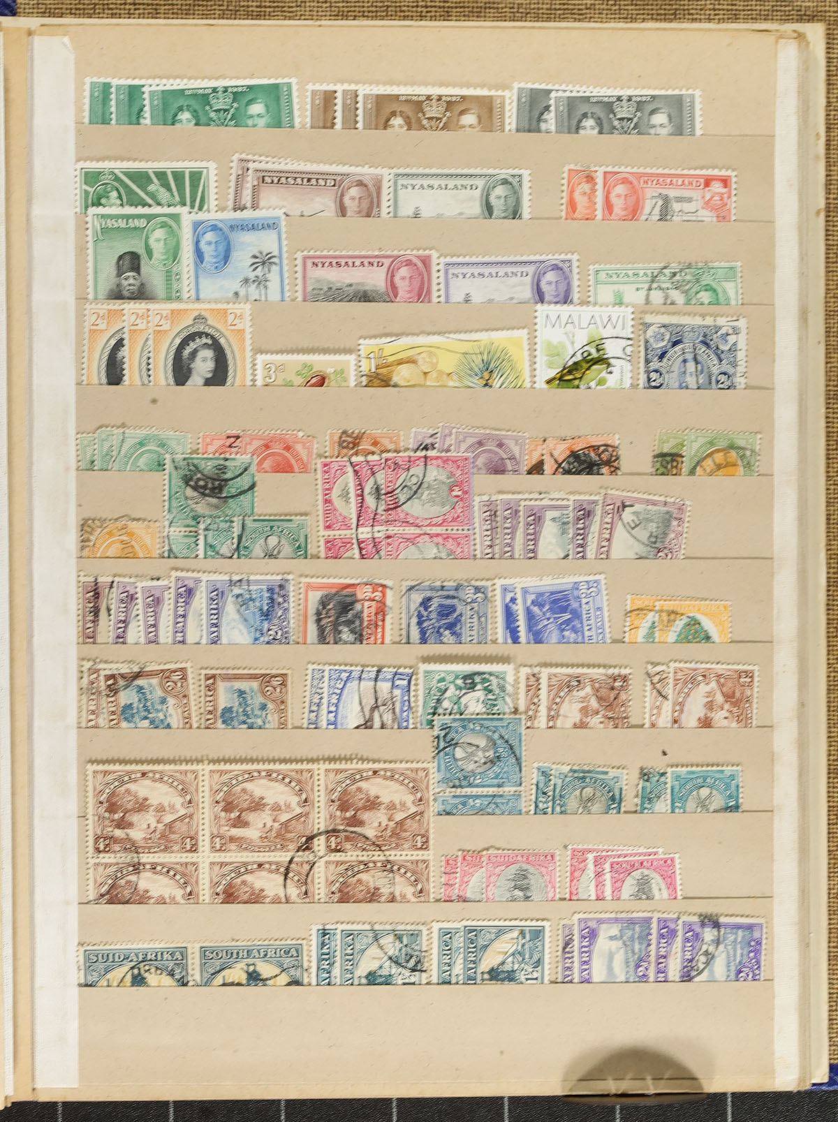 An interesting collector’s holding of British Commonwealh. Starting with a blue springback album with British Central and Southern Africa, mint and used with about 550 different (1012 stamps in total) with strength in Rhodesias, South Africa, but also notable Basutoland, Bechuanaland, Malawi, Nigeria, Nyasaland, SW Africa, Swaziland, Zambia, Zimbabwe and Zululand, plus a half-sheet of Northern Rhodesia 1948 1 ½ d Silver Jubilee, Gambia "cars" in strips. This album in nicely complemented by three packages "British Commonwealth and Empire, smaller countries" of "A to Z" mint and used, with over 2100 stamps, and consignor noting there are 1329 different stamps within these packages. The perfect group for a collector to sort out and compare against their own holdings. Estimate =