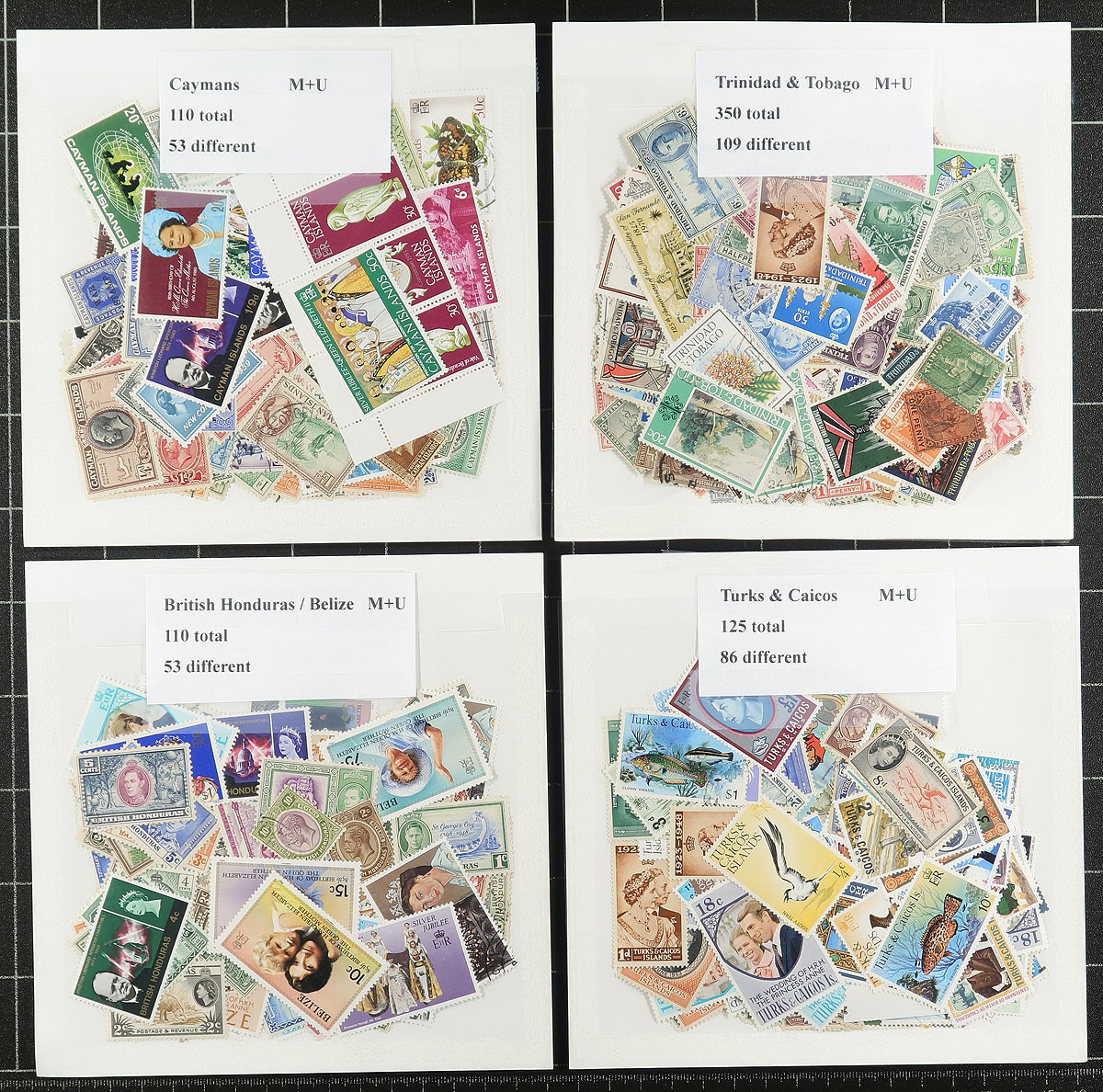 A worthwhile holding of British West Indies, starting with a bulging black binder fill of miniature sheets, sheets, multiples and booklets with a wild-ride of topical interest including Marilyn, Diana, Royalty and Disney. This is nicely complemented by a large bag containing 18 neatly organized packets (by country) of 5426 stamps (2306 different) from 18 different countries. Take a look at the owner listed inventory of the packets to appreciate the scope of the lot. Estimate =