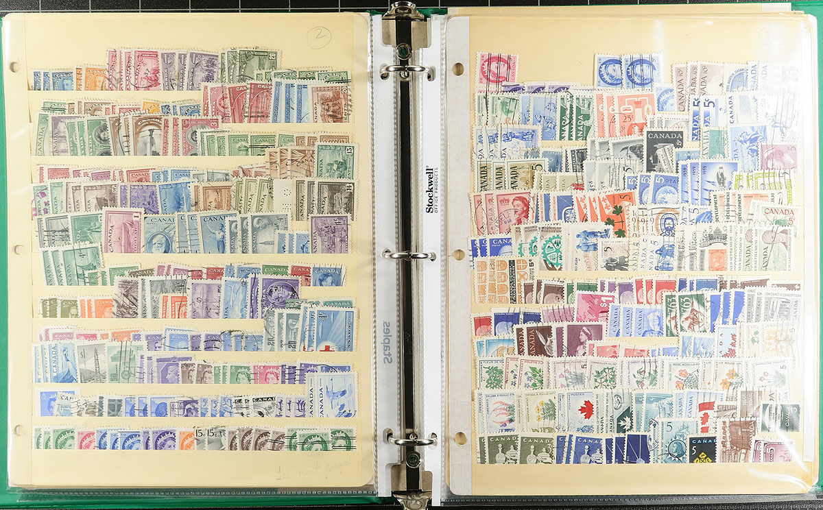Philatelic Potpourri. A paper ream box, filled with an assortment of material to make any collector smile. Consists of (in no particular order) 1) Stanley Gibbons Windsor album (no pages or stamps). 2) GB Edward VIII official souvenir collection (with GB stamps / offices abroad). 3) World Wildlife Fund souvenir collection with 4 postcards, 3 FDC, elephant stamps and blurb letter from Prince Philip. 4) Cigar boxes x2 with stamps sorted into packets by country. 5) Binder of Latin American mint and used stamps). 6) Travel exhibit and postcards in large white binder. 7) Blue binder with album pages of Balkans, Middle East, SE Asia stamps (includes Marilyn from Mongolia). 8) Canada and Newfoundland collection / stock, 1868-2001 with Newfoundland 86 different (450 stamps total), Canada 1200 different (2740 stamps total) including recent used, all laid out on stockpages (noted a forgery NS provincial), expect some faults in the earlier material. Estimate =