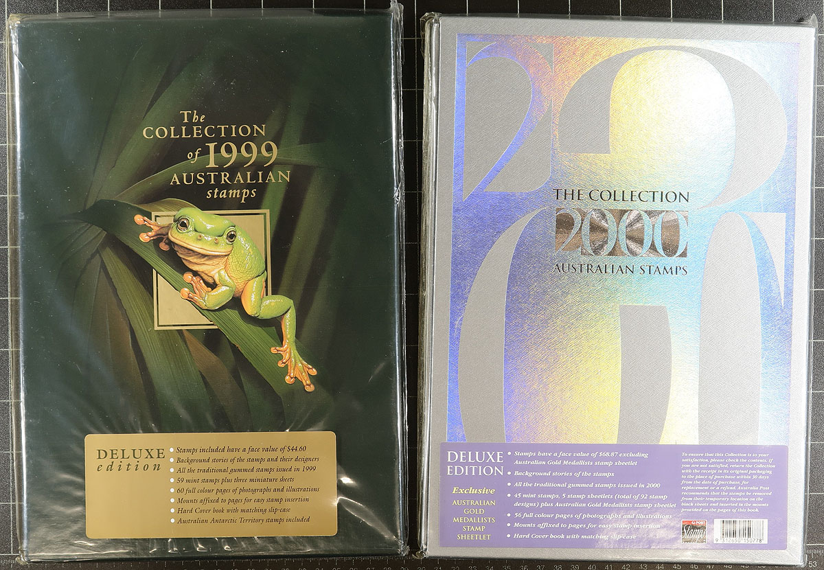 Group of 27 Australia annual collections, complete for the years 1981-2007, filing two bankers boxes, all hardbound and almost all are sealed in original packaging. A high cataloguing lot for collectors, with face value alone totaling AUD$1,169.00 ($1061.21 CDN). Estimate =