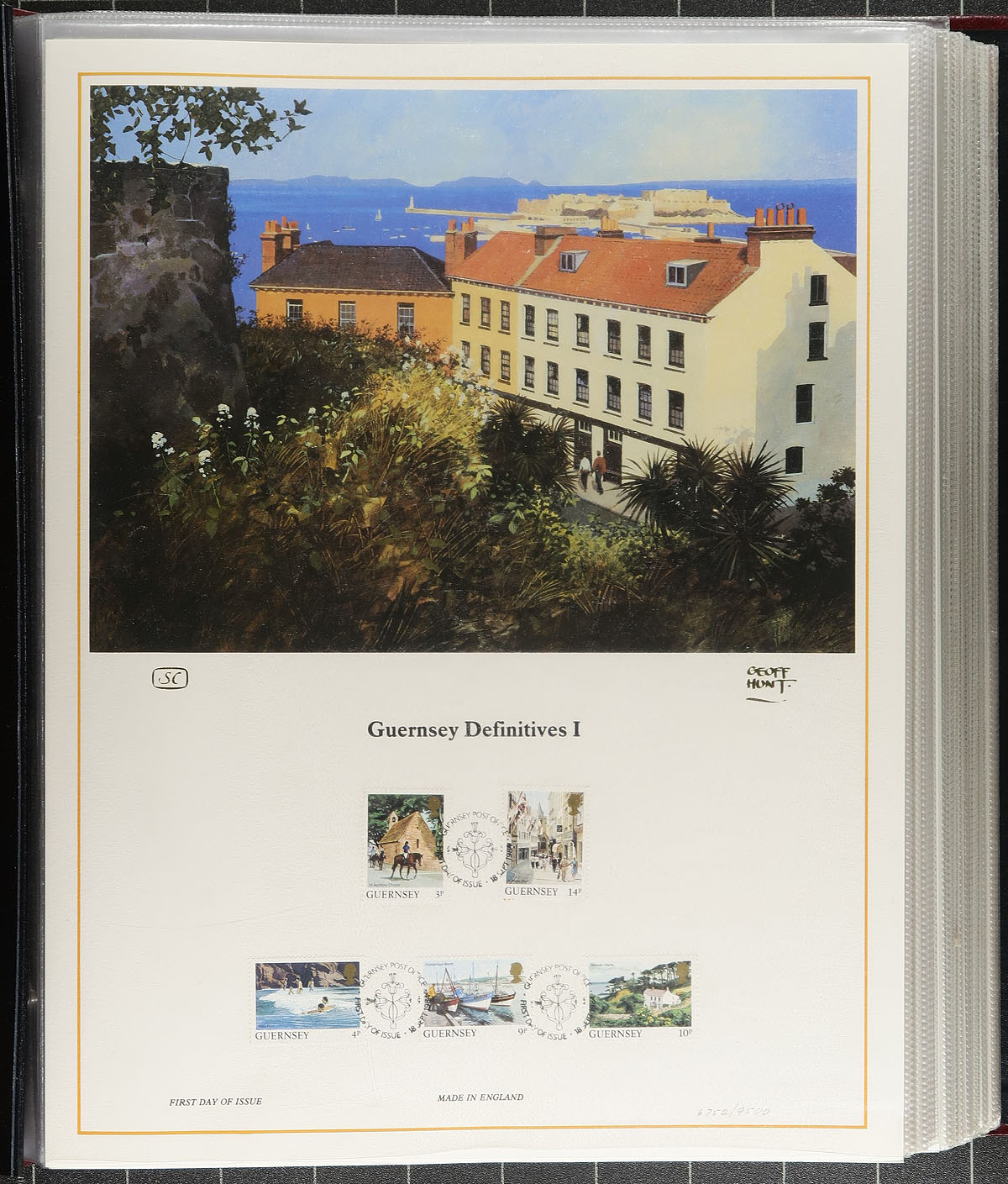 Collection of roughly 350 Great Britain and Channel Islands first day covers in five albums, including 4 albums (roughly 200 items), of limited edition first day lithographs ranging from 1980 to 1991, along with an album containing roughly 150 Great Britain covers from the 1970's to the 1980's. A nice grouping for cover collectors. Estimate =