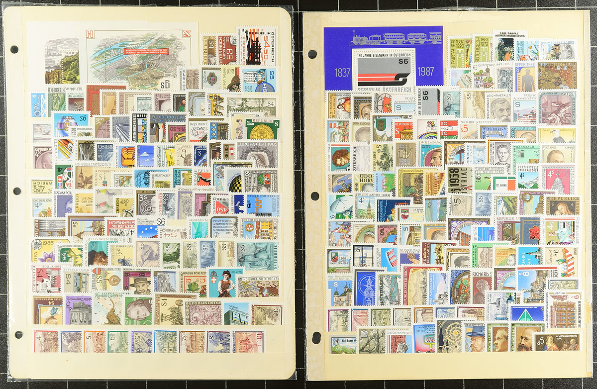 Collection / accumulation of mint Austria, 1920's-1990, containing over 1,000 stamps in roughly 15 stock pages. The lot generally ranges from Scott #459/1524, along with selections of semi-postal issues, with a spot check indicated a few singles, sets, and partial sets, cataloguing $10 and up, including #s 536, 538, 556 (mh, c.v. $175 total). Owner's older Scott catalogue value for the lot totals US$886.00 ($1196.10 CDN). Duplication up to 4 in a few cases. A clean lot for collectors and dealers looking for stock. Estimate =