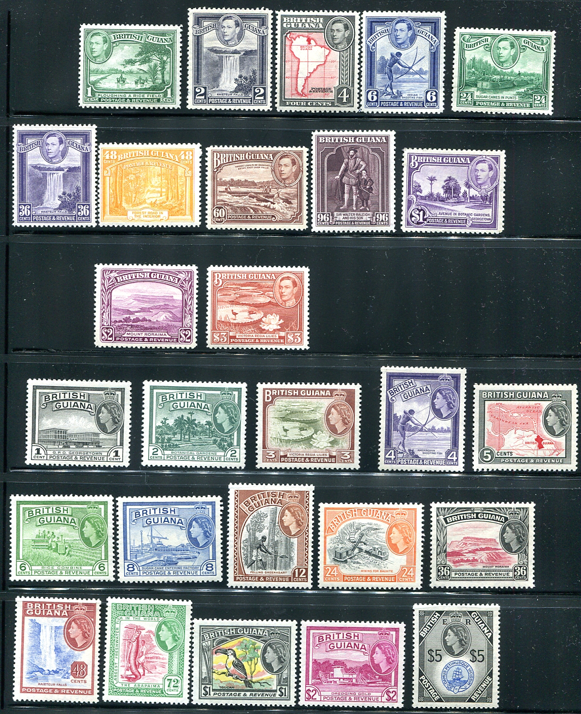 Duo of complete mint sets, including the 1938-1952 George VI Pictorial series (Lightly Hinged) and 1954 QEII Pictorial series (Never Hinged). A very colourful duo of sets. 2026 Scott US$235.10 =