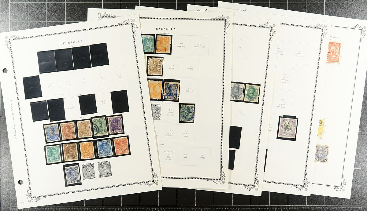 South America. Interesting accumulation of mint and South America material, 1880's-1970's, containing a few thousand stamps mostly on album pages, along with a small album, stockbook, etc. We note better representation from Venezuela, Argentina, Brazil, just to name a few, encountering singles, sets, and partial sets, including back of the book material, with a few items cataloguing $10 and up. Owner's older catalogue value for the lot totals US$971.00, leaving better finds to the dedicated collector. A vastly underappreciated area of philately and well worth a look at our online photos. Estimate =