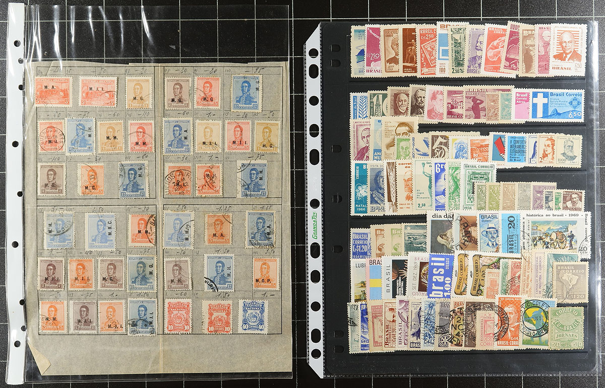 South / Central America. Collections / accumulation of mint and used Central and South America material, 1890's-1990's, with over 1,000 stamps in roughly 30 stock pages. A spot check indicated better representation from Paraguay, Brazil, Argentina, Bolivia, and more, noting singles, sets, partial sets, officials, and other back of the book material. Owner's older 2015 Scott US$1,259.00 =