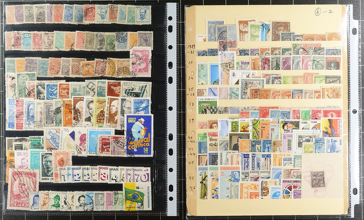 South / Central America. Collections / accumulation of mint and used Central and South America material, 1890's-1990's, with over 1,000 stamps in roughly 30 stock pages. A spot check indicated better representation from Paraguay, Brazil, Argentina, Bolivia, and more, noting singles, sets, partial sets, officials, and other back of the book material. Owner's older 2015 Scott US$1,259.00 =