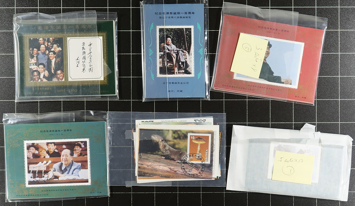 Accumulation of many hundreds of primarily never hinged souvenir sheets, 1960's-1980's, in album or stock pages, and in dealer approval pages. A spot check indicated material from South America, Europe, and African countries, with better representation from Austria, Vatican City, Ireland, just to name a few. Many of the items have been priced retailing in the $5 to $15 range each. A nice lot for all collectors, also encountering several suitable topical and thematic subjects. Estimate =