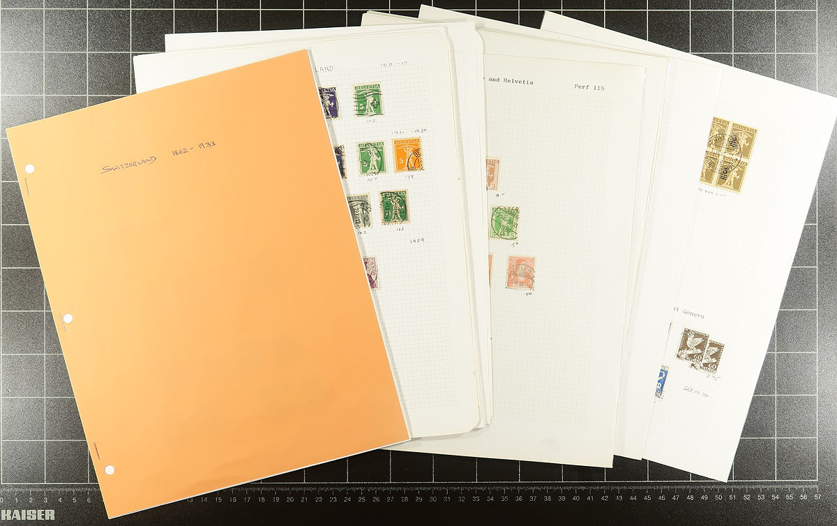 Collection of used Switzerland, 1862-1939, containing a few hundred stamps on roughly 30 homemade album pages. The collection is generally well organized, with each stamp identified by the collector, ranging from Scott #43/255, noting singles, sets, and partial sets, with a spot check indicated some material cataloguing $10 to $20 each. Owner's 2014 Scott catalogue value for the collection totals US$778.00. A nice collection with some duplication for a few issues, a faults with a few stamps, overall fine to very fine. Estimate =