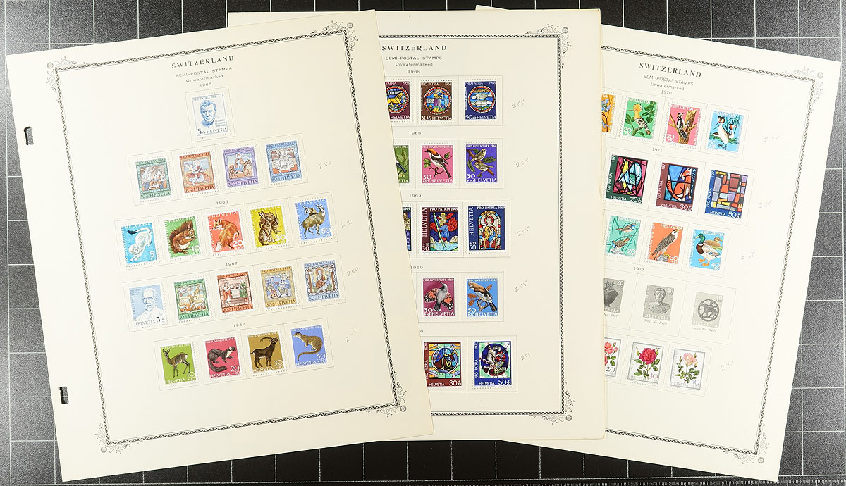 Collection / accumulation of used Switzerland, 1860's-2000, with over 1,000 stamps in roughly 20 stock pages. The lot generally ranges from Scott #50/1072, noting singles, sets, partial sets, along with several used blocks. Some of the stamps have been identified, with catalogue value ranging from $15 to $20 and up each. Owner's 2016 Scott catalogue value for the lot totals US$1,880.00. Postmark interest includes cds types, including a few "socked on the nose" town cancels. A few faults with a few of the early stamps, overall fine to very fine. Estimate =