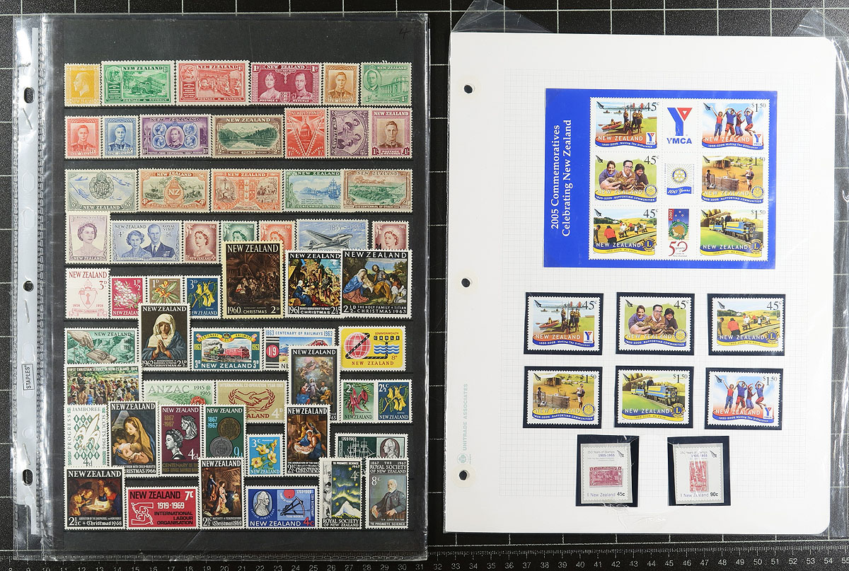 Nice accumulation of primarily never hinged New Zealand, 1916-2008, containing roughly 1,000 stamps in over 20 stock or album pages. The lot generally ranges from Scott #163/2222, containing several sets, a few souvenir sheets and booklets, along with a small selection of semi-postal issues. Owner's 2015 Scott catalogue value for the lot totals US$1,305.0, with face value alone at least a few hundred dollars. A nice clean lot for all collectors. Estimate =