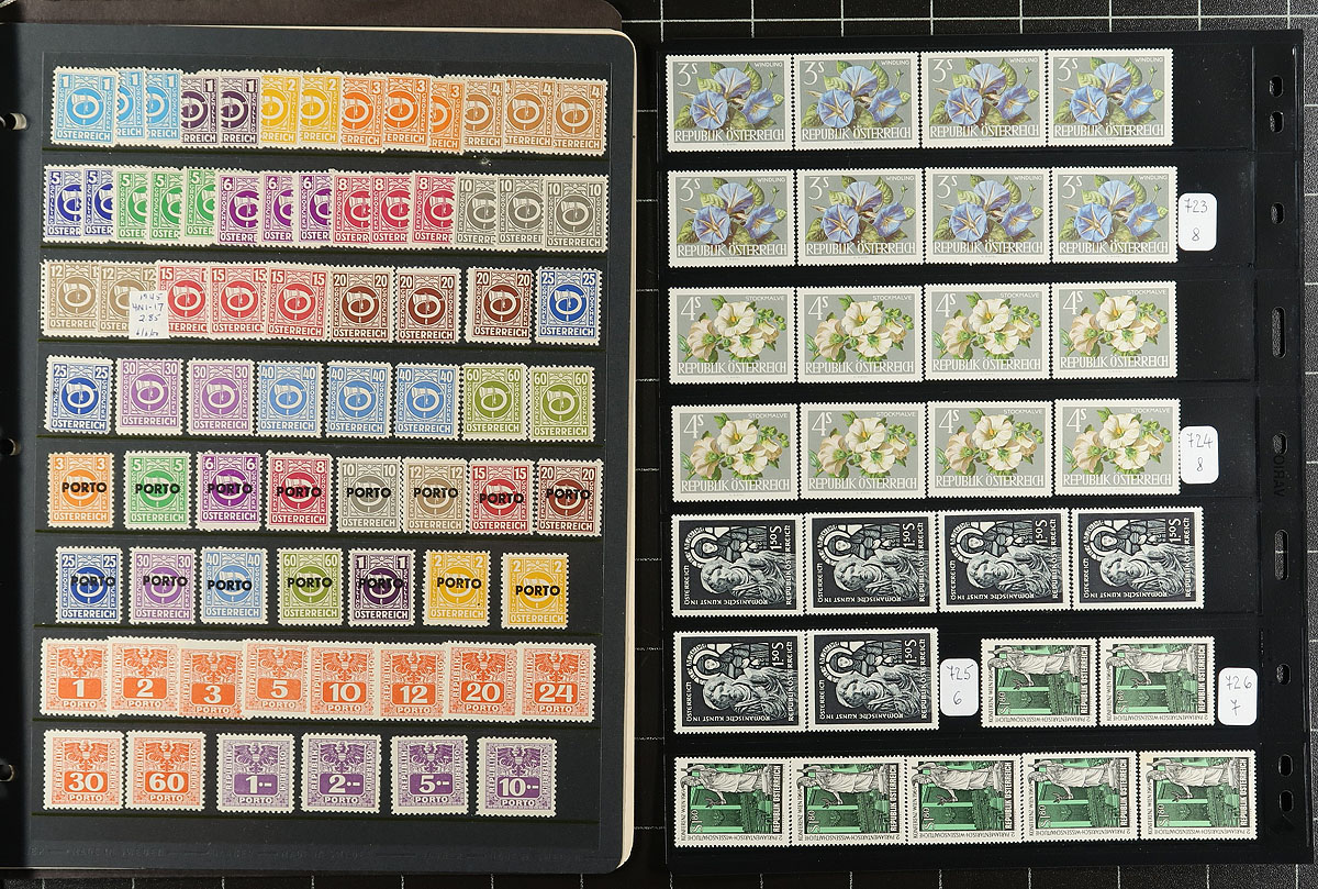 Accumulation of primarily never hinged Austria, 1908-1993, containing about 1,600 stamps in roughly 15 stock or album pages. The lot generally ranges from Scott #119a/1417, containing sets, partial sets, souvenir sheets and back of the book issues. Owner's 2019 Scott catalogue value for the lot totals US$765.00, with duplication between 5 to 10 for some issues. A clean lot for all collectors. Estimate =