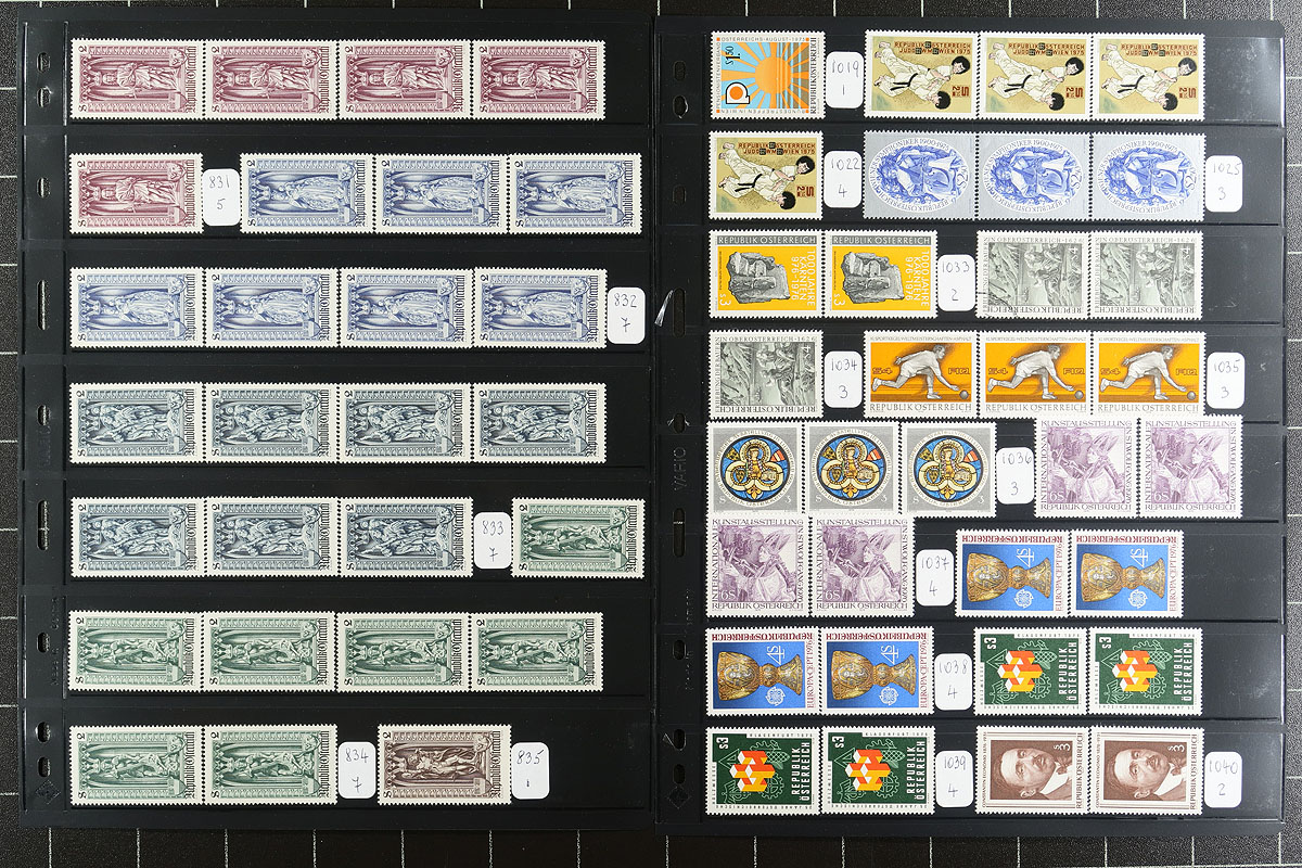 Accumulation of primarily never hinged Austria, 1908-1993, containing about 1,600 stamps in roughly 15 stock or album pages. The lot generally ranges from Scott #119a/1417, containing sets, partial sets, souvenir sheets and back of the book issues. Owner's 2019 Scott catalogue value for the lot totals US$765.00, with duplication between 5 to 10 for some issues. A clean lot for all collectors. Estimate =