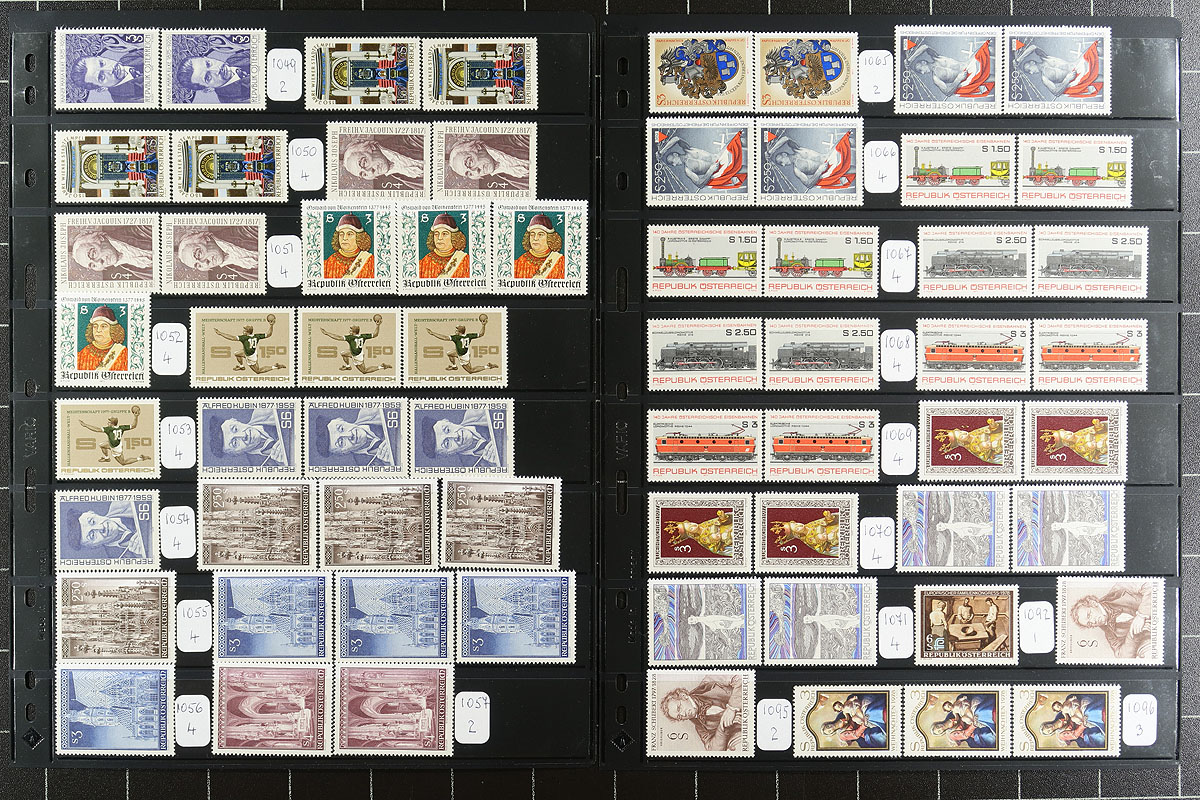 Accumulation of primarily never hinged Austria, 1908-1993, containing about 1,600 stamps in roughly 15 stock or album pages. The lot generally ranges from Scott #119a/1417, containing sets, partial sets, souvenir sheets and back of the book issues. Owner's 2019 Scott catalogue value for the lot totals US$765.00, with duplication between 5 to 10 for some issues. A clean lot for all collectors. Estimate =