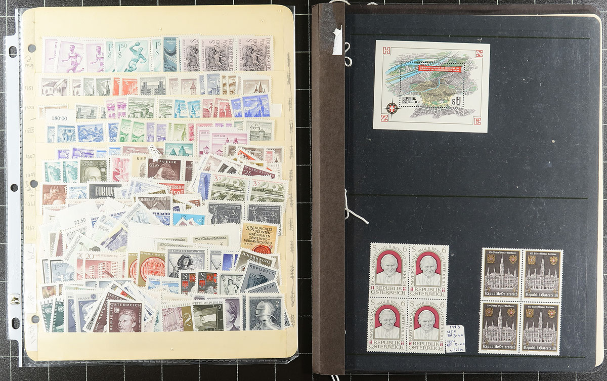 Accumulation of primarily never hinged Austria, 1908-1993, containing about 1,600 stamps in roughly 15 stock or album pages. The lot generally ranges from Scott #119a/1417, containing sets, partial sets, souvenir sheets and back of the book issues. Owner's 2019 Scott catalogue value for the lot totals US$765.00, with duplication between 5 to 10 for some issues. A clean lot for all collectors. Estimate =