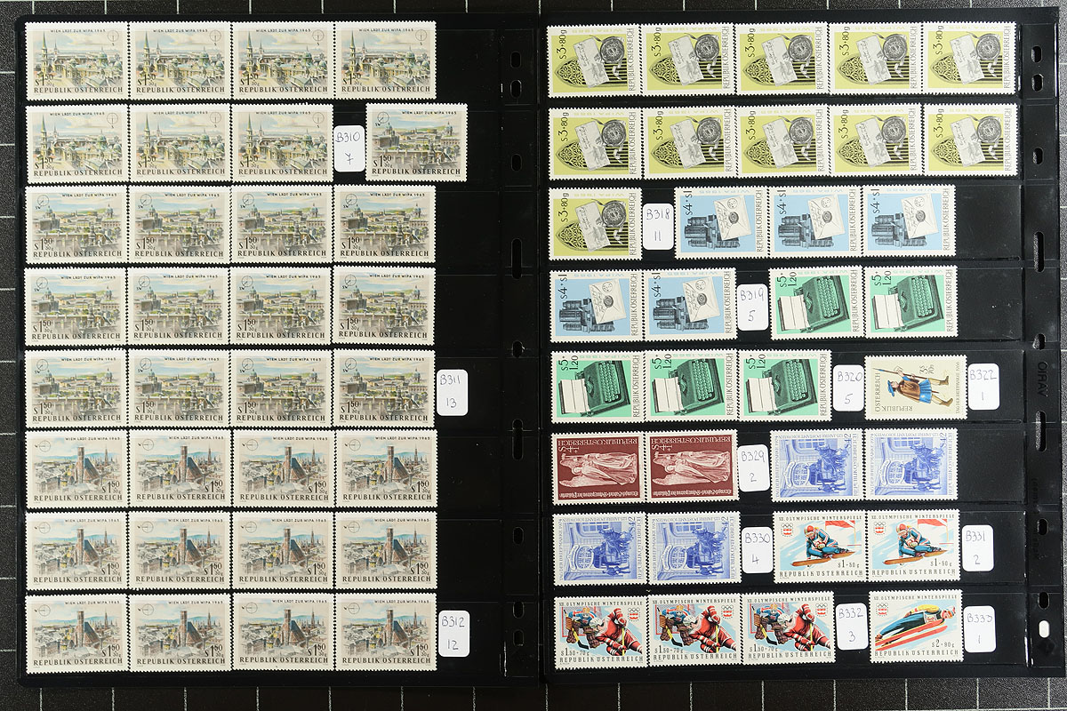 Accumulation of primarily never hinged Austria, 1908-1993, containing about 1,600 stamps in roughly 15 stock or album pages. The lot generally ranges from Scott #119a/1417, containing sets, partial sets, souvenir sheets and back of the book issues. Owner's 2019 Scott catalogue value for the lot totals US$765.00, with duplication between 5 to 10 for some issues. A clean lot for all collectors. Estimate =