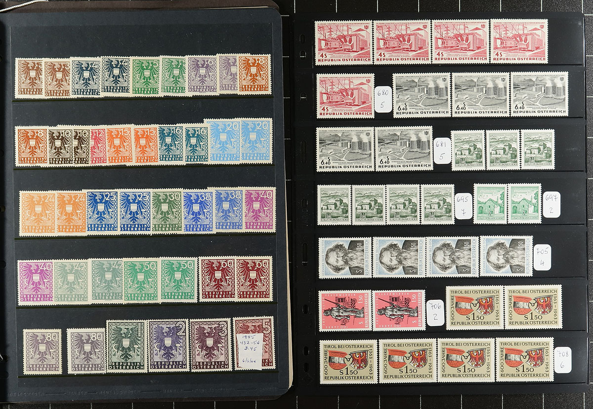 Accumulation of primarily never hinged Austria, 1908-1993, containing about 1,600 stamps in roughly 15 stock or album pages. The lot generally ranges from Scott #119a/1417, containing sets, partial sets, souvenir sheets and back of the book issues. Owner's 2019 Scott catalogue value for the lot totals US$765.00, with duplication between 5 to 10 for some issues. A clean lot for all collectors. Estimate =