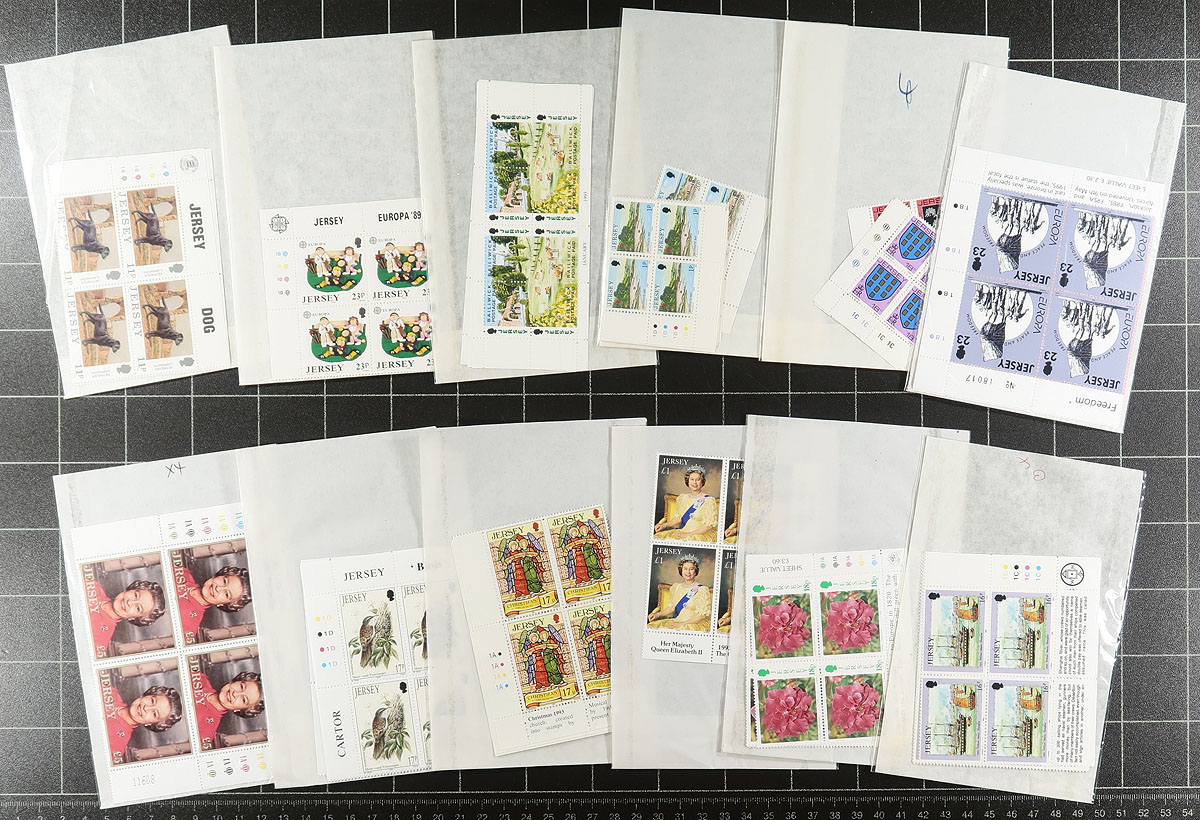 Collection of never hinged blocks in a cigar box, 1970's-1990's, all having "traffic light" inscriptions all still in original packaging from the postal services. We estimate many hundreds of blocks, noting sets, commemorative, definitives, and high denominations. A potentially high cataloguing lot, face value alone totals £477.00. A nice lot for the Commonwealth, topical, or thematic collector. Estimate =
