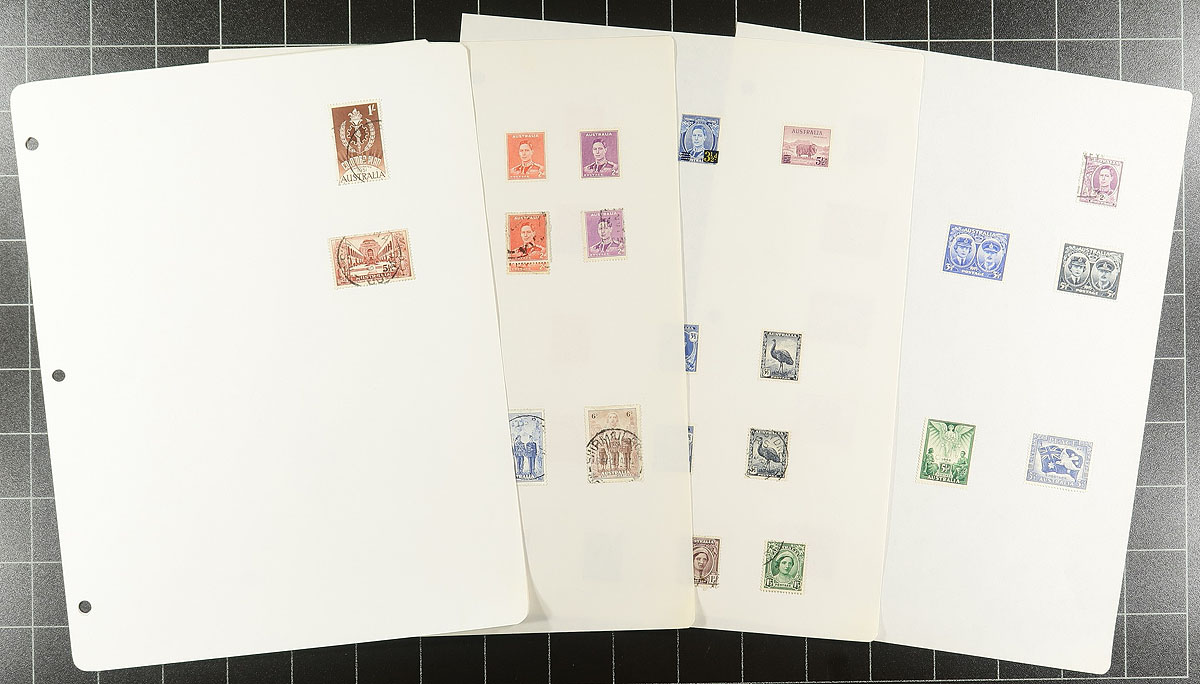 Nice accumulation of used Australia, 1913-2009, containing over 1,300 stamps in roughly 25 stock or album pages. The lot generally ranges from Scott #1/3189, including a selection of Kangaroos, KGV Heads, and back of the book material. A spot check indicated a few stamps and partial sets cataloguing $10 and up, with owner's 2018 Scott catalogue value for the collection totaling US$1,776.00. Duplication up to 3 to 5 for some issues. A good lot for the Australia or Commonwealth collector, a few faults expected, overall fine to very fine. Estimate =