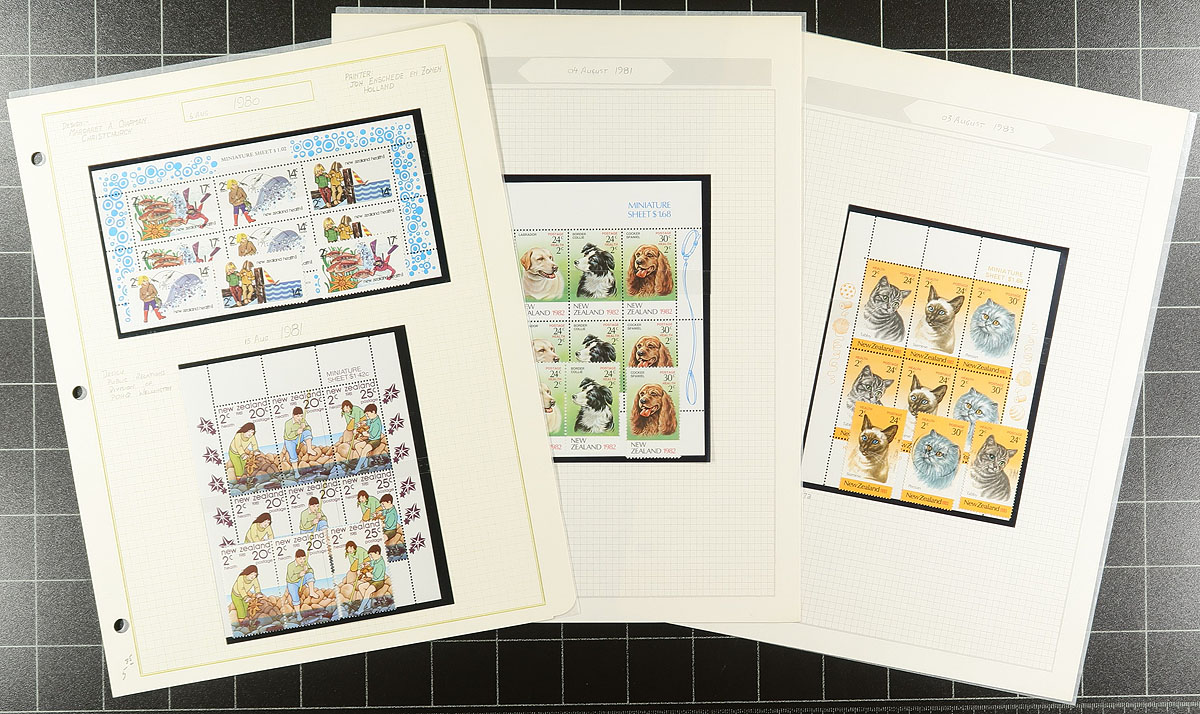 NZ Health Stamp Collection 1939-2000 including mint / used, miniature sheets etc. A well-organized run of material, all in mounts on album pages. While the earlier mint tends to be hinged (spot check showed Lightly Hinged), the stamps shift to mostly Never Hinged by the mid-1960's. A very clean offering. 2026 Scott US$617.30 =
