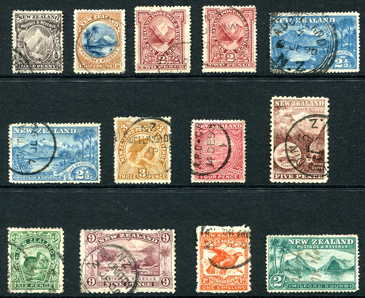 Attractive used selection of 13 used stamps from the 1898 Pictorial series. A nice assembly, with some premium dated "socked on the nose" postmarked stamps. 2026 Scott US$397.00 =