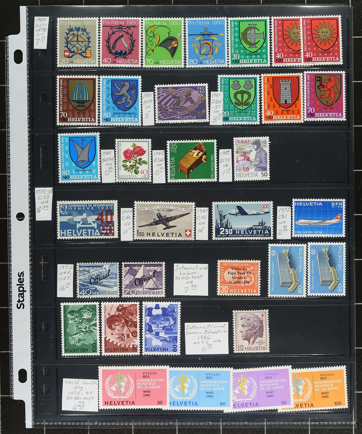 A wonderful collection of mint Never Hinged 1921-1987 stamps, including "back of the book" all neatly arranged and identified on stockpages. A very clean offering, with the "back of the book" including semi-postals, airmails, officials, bureaus (W.H.O., Education, UPU, ITU etc). A total of 559 stamps, very clean overall. 2025 Scott US$735.00 =