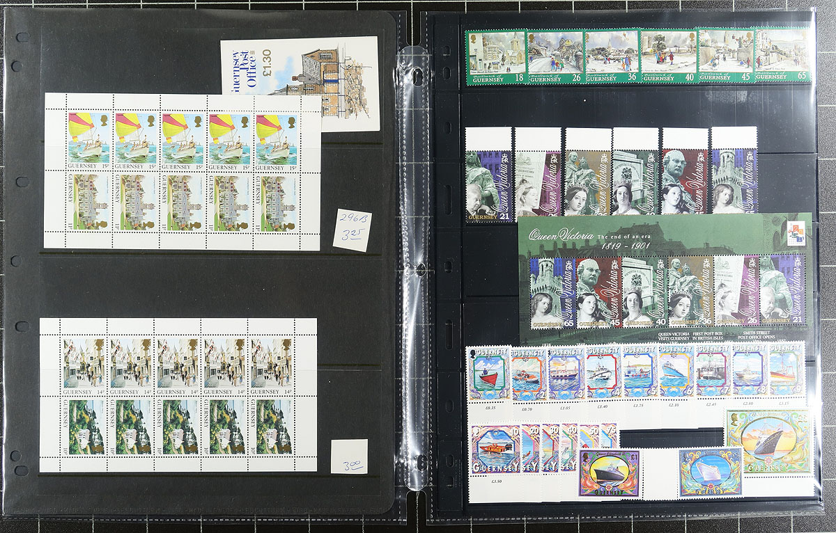 VF mint NH collection of 265 almost all different stamps, 34 souvenir sheets/miniature panes, 8 booklet panes and 14 complete booklets, 1969 to 2001 period material, with the vast majority 1990's period issues. Excellent range of material with complete sets and high values. The lot includes a full and very descriptive inventory list. The total face value as useable postage is £157.65 = $295.50 CDN. 2026 Scott US$508.10 =