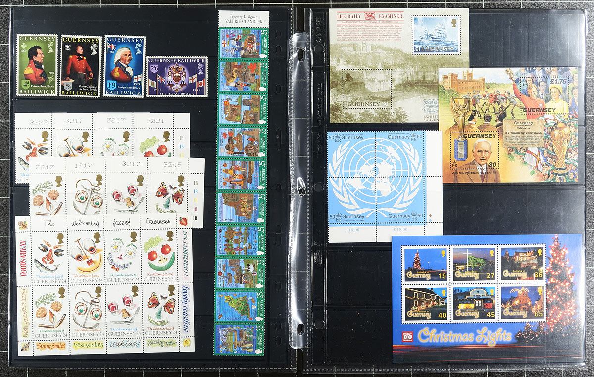 VF mint NH collection of 265 almost all different stamps, 34 souvenir sheets/miniature panes, 8 booklet panes and 14 complete booklets, 1969 to 2001 period material, with the vast majority 1990's period issues. Excellent range of material with complete sets and high values. The lot includes a full and very descriptive inventory list. The total face value as useable postage is £157.65 = $295.50 CDN. 2026 Scott US$508.10 =