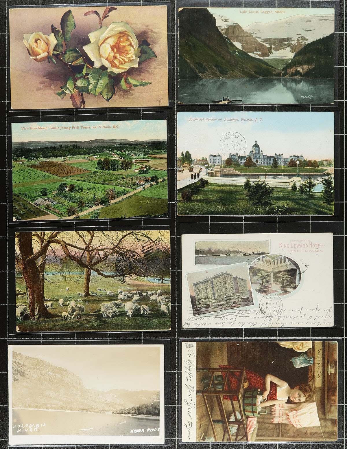 British Columbia Split Ring Postcards. An old-time hoard of 25 split ring cancels on postcards, mostly Edward / Admiral era from a local estate. Towns included are Mayook, Port Alberni, Royal Oak, Sparwood, Forestdale, Roseberry, Colwood, China Creek, Sirdar, Goldstream, Halcyon Hot Springs, Ganges, Mount Tolmie, Alberni, Rosedale, Syringa Creek, Gambier, Burrard Inlet, North Lonsdale (CDS), Extension, Hopkins Landing, Port Haney, North Bend, Cottonwood and Northbend. A nice opportunity for the BC postmark enthusiast. Estimate =