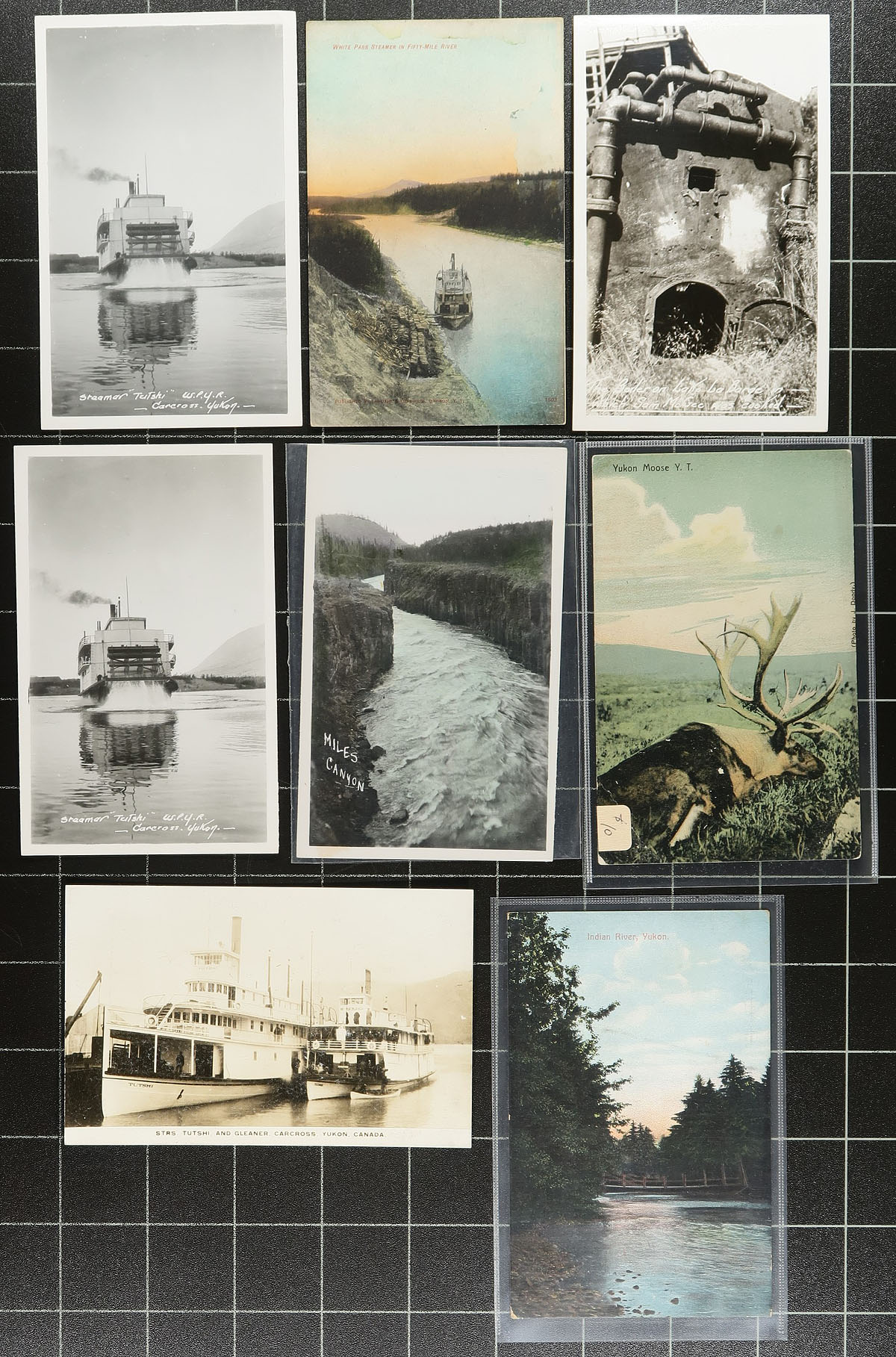 Postcards. A seldom offered selection of Yukon Territory / Northern Canada picture postcards, with 57 postcard, plus one small photograph. A nice assortment of views, with many pre-1920 and RPPC (real photo postcard). Noted views of Steamships, Hunting, Lake Bennett, Kluane Lake, Yukon Gold Company, White Pass & Yukon Route related etc. A lovely batch, some still in the original dealer sleeves from when purchased. Estimate =
