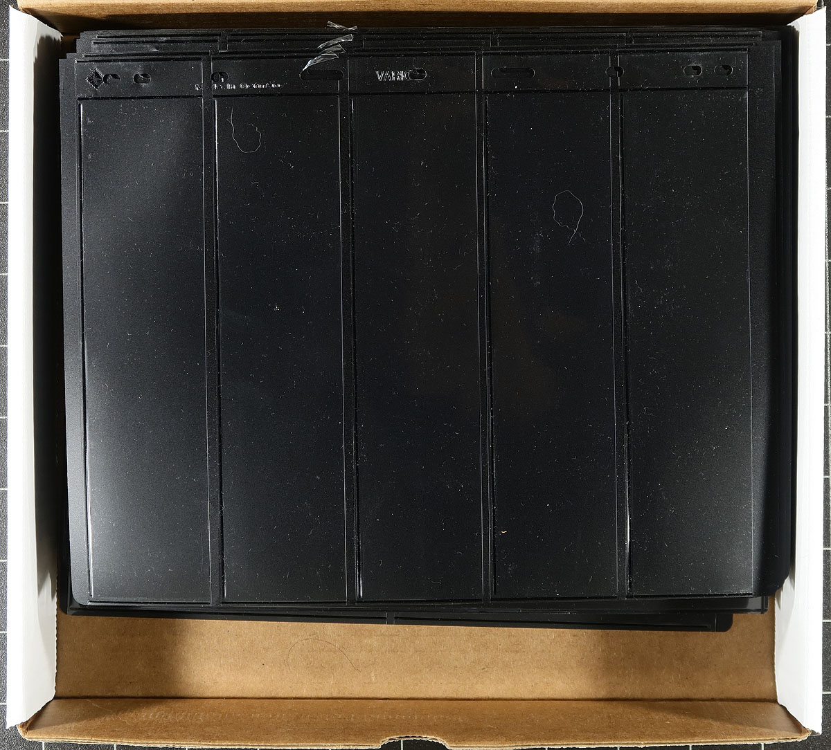 Vario brand / Vario style stockpages. A lightly-used assortment of 100x Vario brand (noted just a few "vario style") stockpages. The page selection breaks down as follows, 6-line x5, 5-line x14, 3-line x13, 2-line x31, 1-line x23 and 4-pocket x 15. A nice clean group, with the occasional minor mark or sticker (that can usually be removed), that have lots of life left in them. Retail on these is now well over $2.00 per page! Estimate =