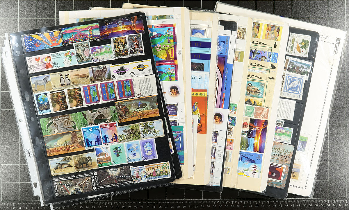 Nice collection of primarily never hinged United Nations in Vienna, 1979-2001, containing many hundreds of stamps in over 20 album or stock pages. The collection generally ranges from Scott #1/301, including mostly complete sets and many souvenir sheets. Owner's old Scott 2013 catalogue value for the collection totals US$833.00 ($1124.55 CDN). A lovely collection noting many suitable topical and thematic subjects including endangered animals, space, sports, and much more. Estimate =