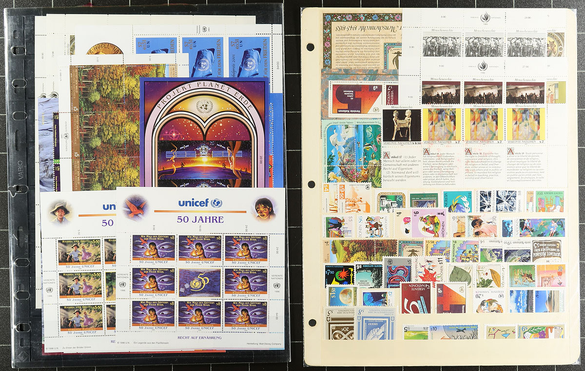 Nice collection of primarily never hinged United Nations in Vienna, 1979-2001, containing many hundreds of stamps in over 20 album or stock pages. The collection generally ranges from Scott #1/301, including mostly complete sets and many souvenir sheets. Owner's old Scott 2013 catalogue value for the collection totals US$833.00 ($1124.55 CDN). A lovely collection noting many suitable topical and thematic subjects including endangered animals, space, sports, and much more. Estimate =