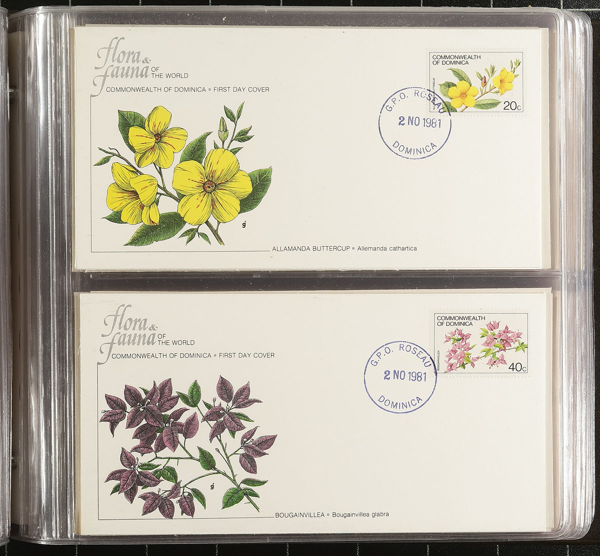 Topical collections filling a carton, containing several hundreds of stamps and covers, including America's First Ladies, Flora & Fauna of the World (3 volumes), large binder containing the Historic Stamps of America, and a few more. A nice lot for all collectors. Estimate =