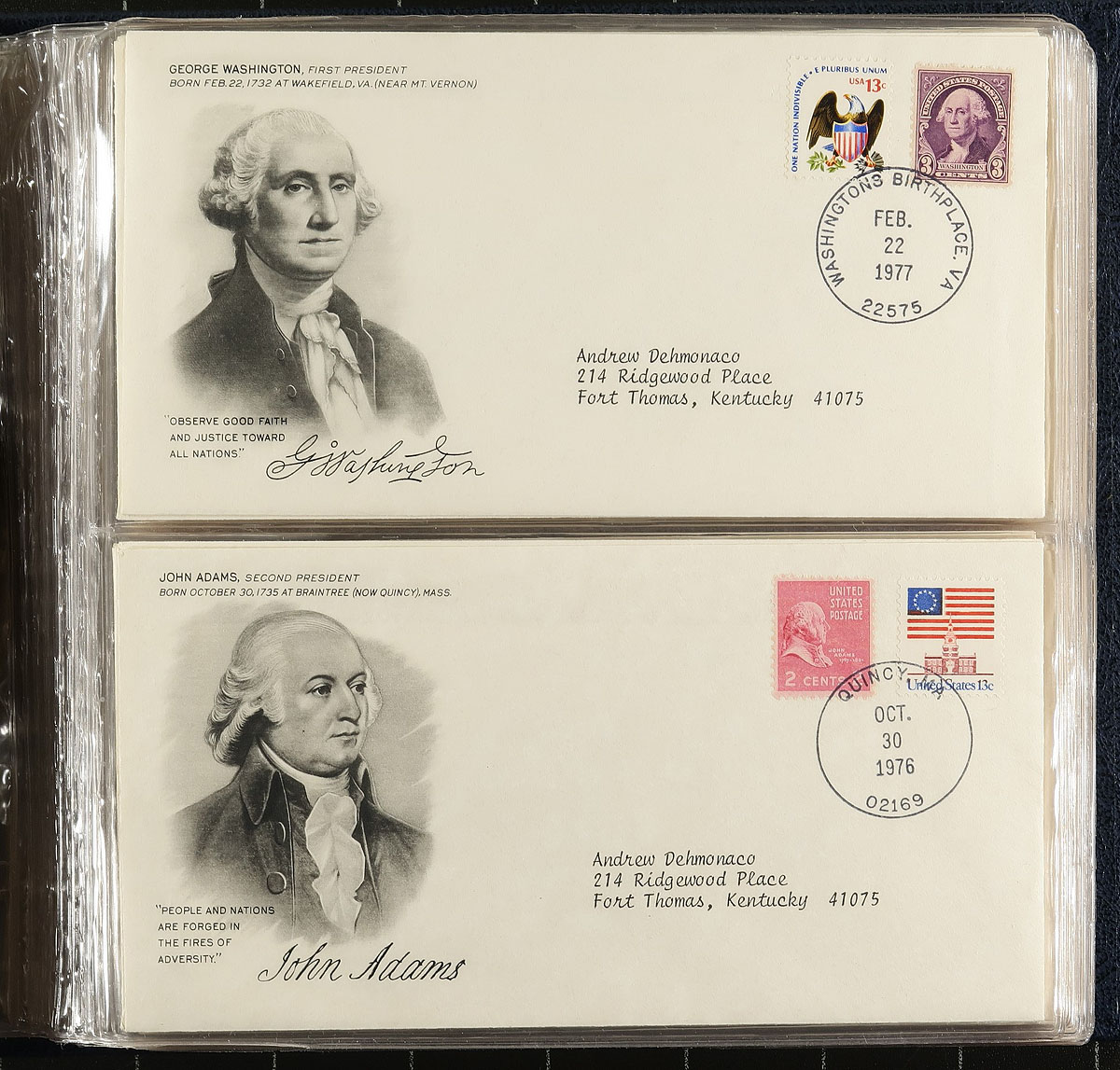 Topical collections filling a carton, containing several hundreds of stamps and covers, including America's First Ladies, Flora & Fauna of the World (3 volumes), large binder containing the Historic Stamps of America, and a few more. A nice lot for all collectors. Estimate =
