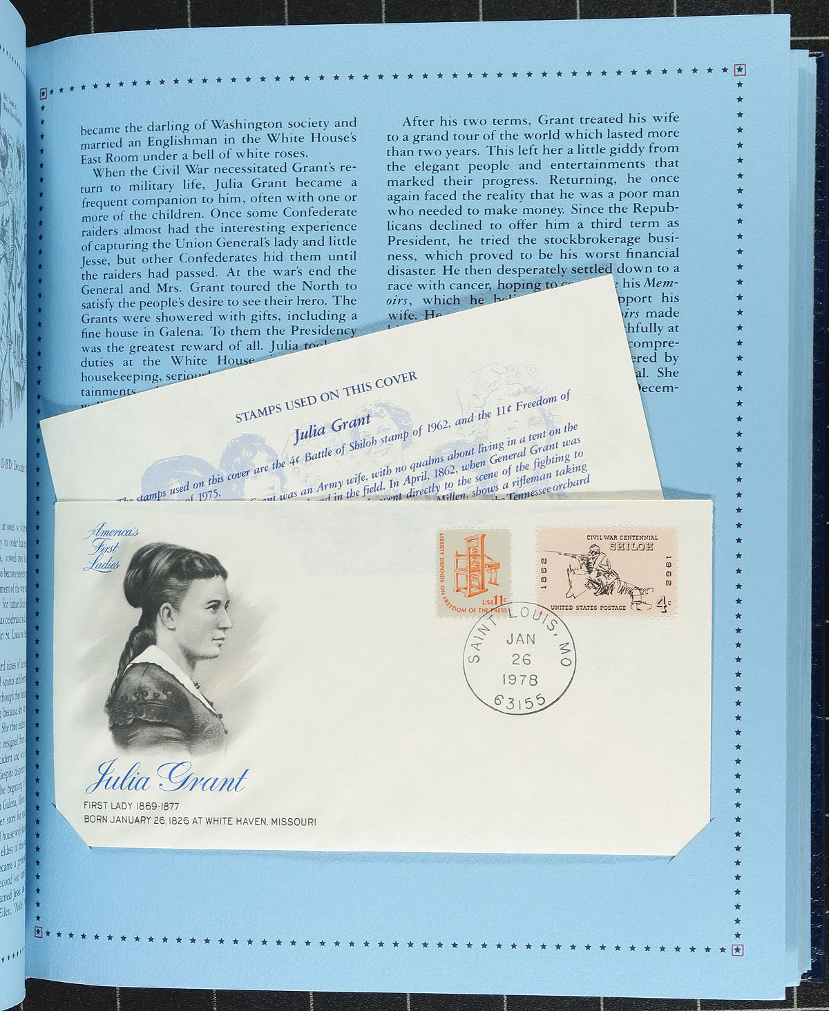 Topical collections filling a carton, containing several hundreds of stamps and covers, including America's First Ladies, Flora & Fauna of the World (3 volumes), large binder containing the Historic Stamps of America, and a few more. A nice lot for all collectors. Estimate =