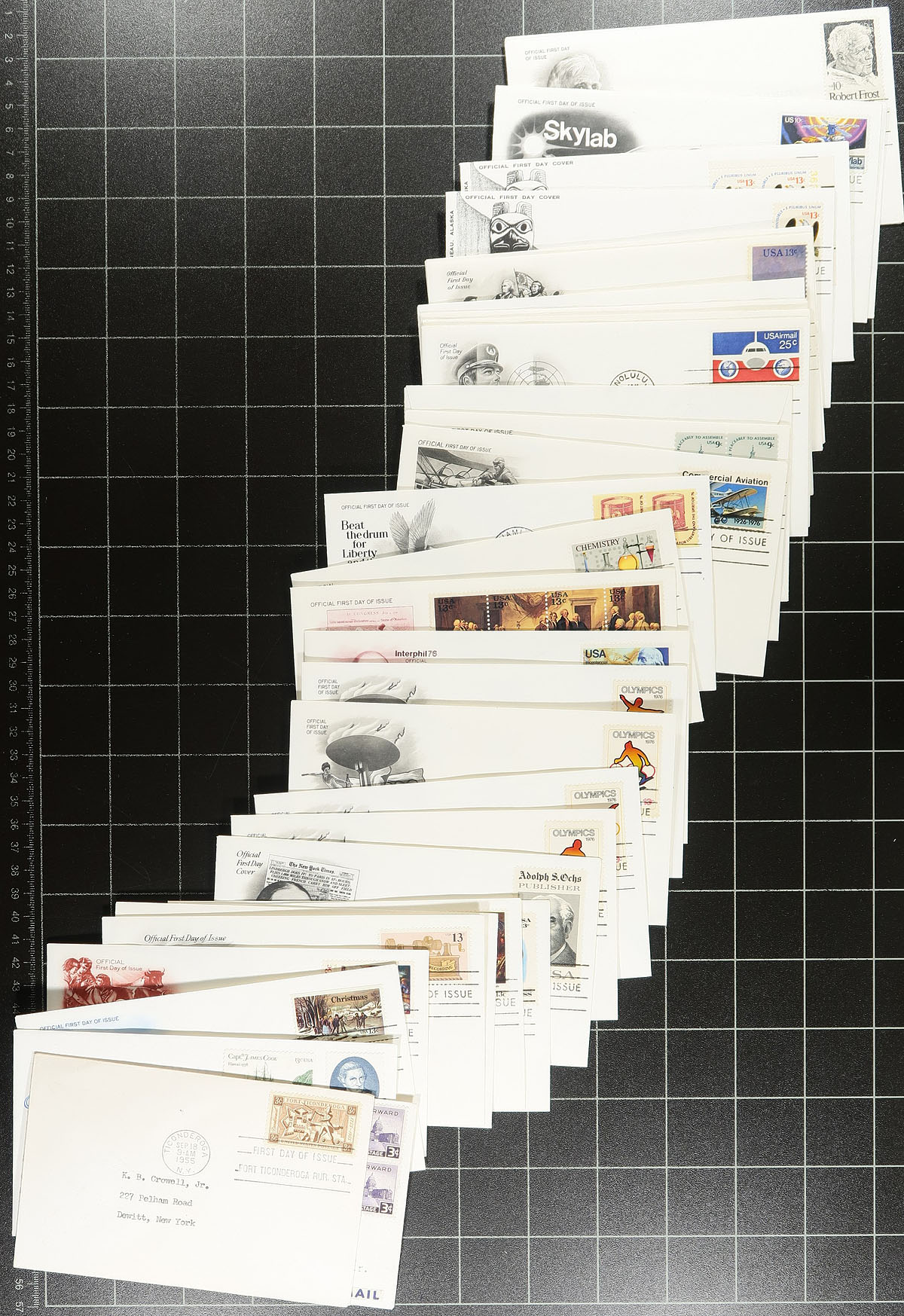 Lovely group of United States first day covers, generally ranging from the 1940's-onwards, with the overwhelming majority having private cachets, noting Art Craft, Fleetwood, several from "The Pheonix - Connecticut Group of Insurance Companies", Artmaster, and more, along with some hand drawn or painted cachets. Estimate =