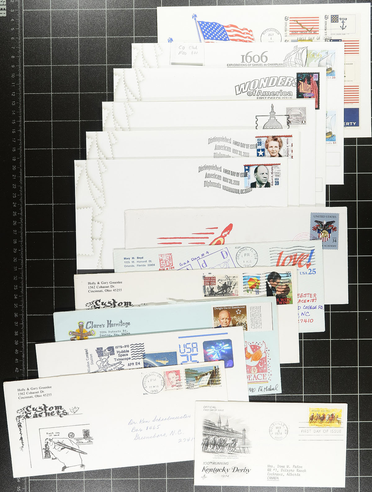 Lovely group of United States first day covers, generally ranging from the 1940's-onwards, with the overwhelming majority having private cachets, noting Art Craft, Fleetwood, several from "The Pheonix - Connecticut Group of Insurance Companies", Artmaster, and more, along with some hand drawn or painted cachets. Estimate =