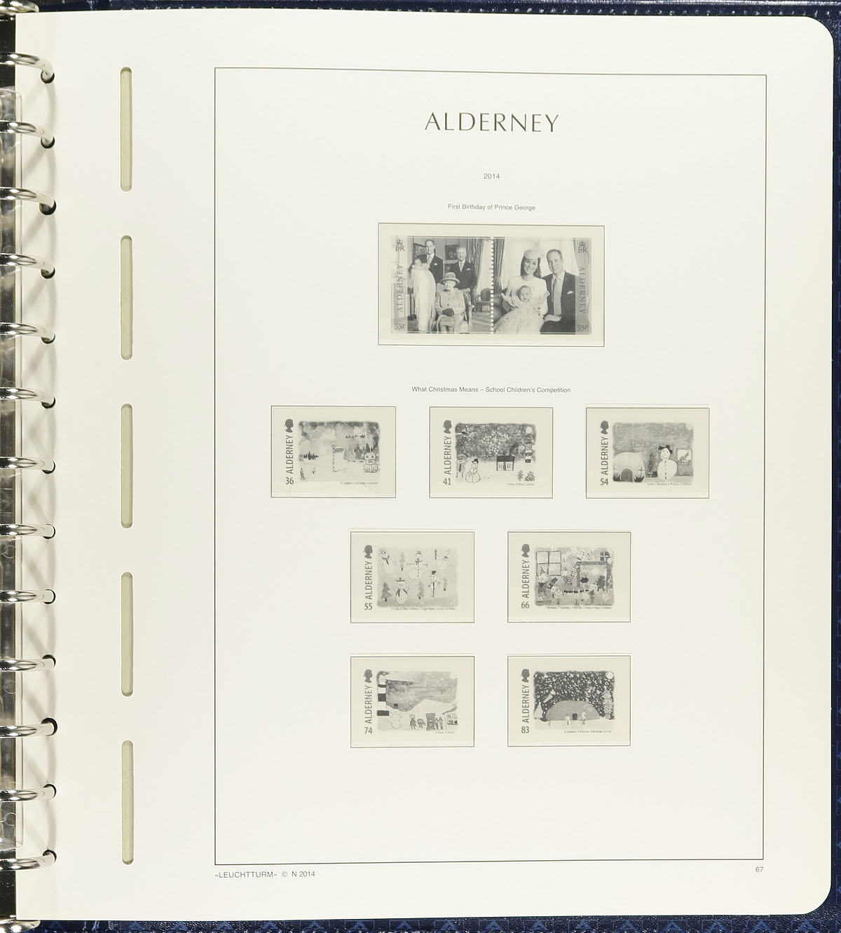 Alderney hingless album pages from 1983 to 2014, housed in a Lighthouse album and slipcase. The pages are unused with the binder in new or near new condition, with a retail price of a few hundred dollars. Estimate =