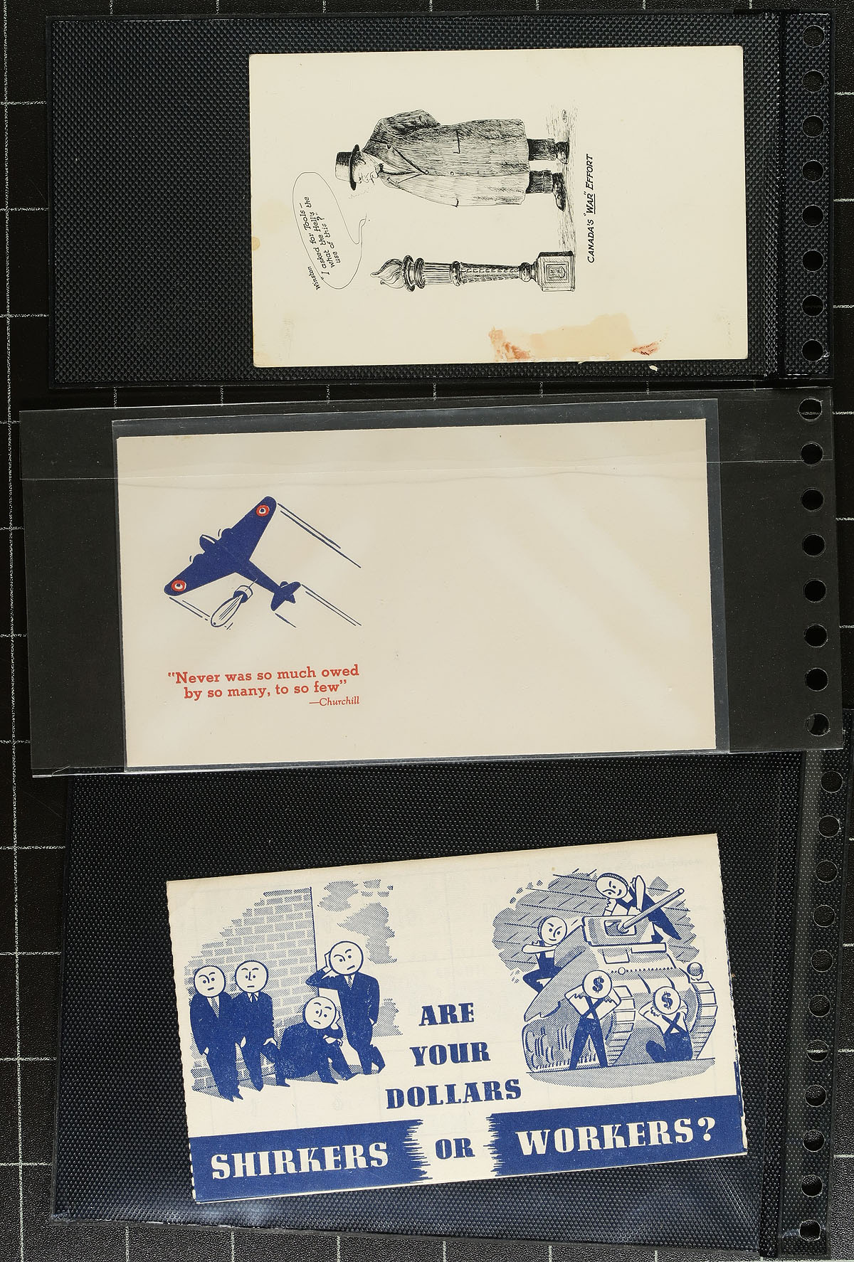 WWII Patriotic Cachet Covers. A wonderful visually striking collection of 44 illustrated envelopes, all relating the war effort, both at home and overseas. The slogans / captions on many of these were the mantra of the time, and while some have aged out, others are seemingly just as relevant today. Captions include "V for Victory", "Flying for Freedom", "Carry on Canada" etc. We don't see collections like this often! Estimate =
