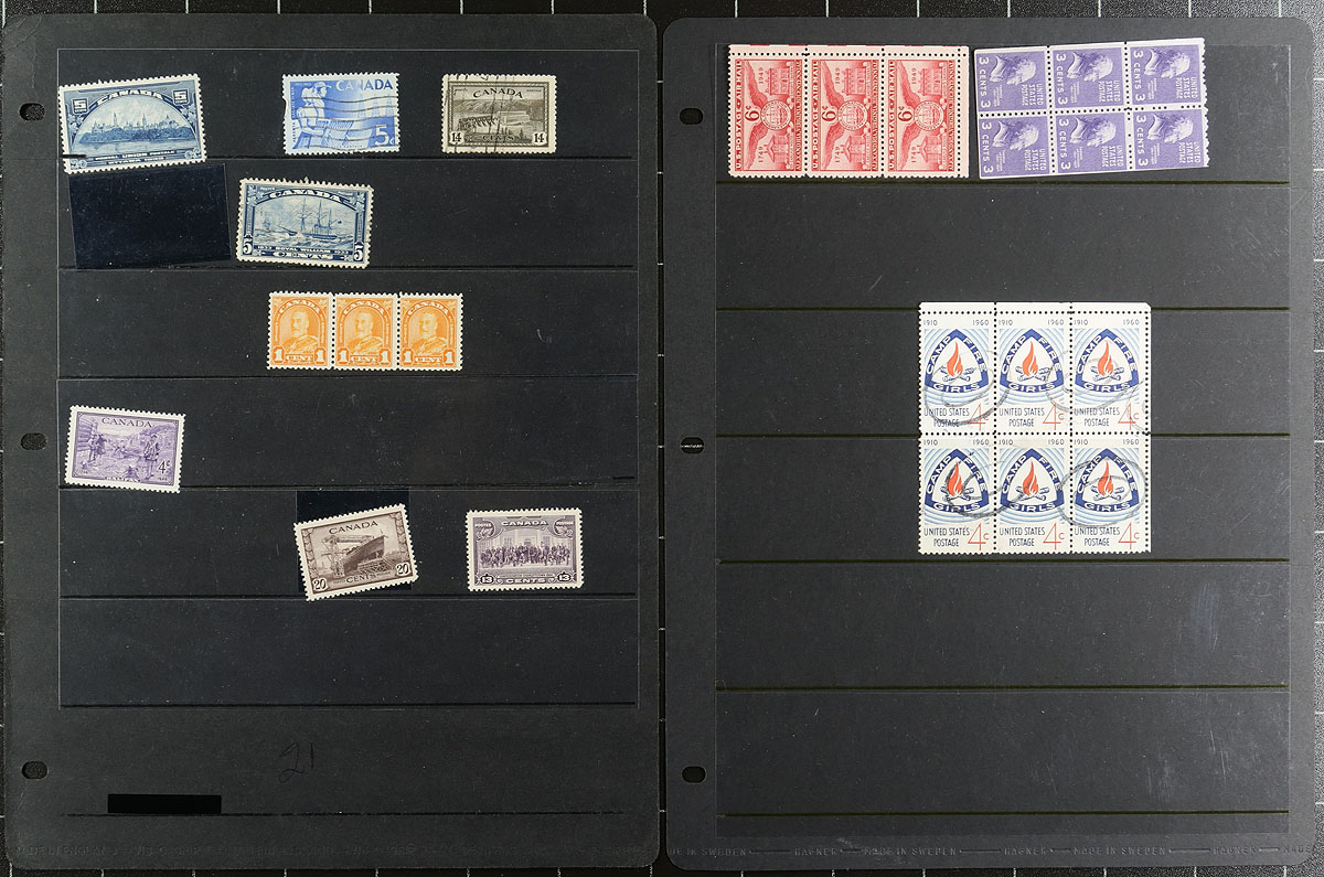 Collection of mostly mint, including blocks / multiples from the QV to QEII era, all arranged on about two dozen stockpages, withing a binder. Noted Admirals, Map Stamps, Jubilee Block, many 1935 10c RCMP, coils, $1.00 Vancouver Harbour singles and plate blocks, 1972 Earth Sciences, 1975/1976 Olympics high-values, Radio Canada, Suzor-Cote etc. Lots of value here, expect the early material to be a mix of Hinged/Never Hinged, with much of the later being Never Hinged. A great lot to keep what you need and sell the rest. Catalogue value would add up quickly here! Offered as received from a local estate. Estimate =