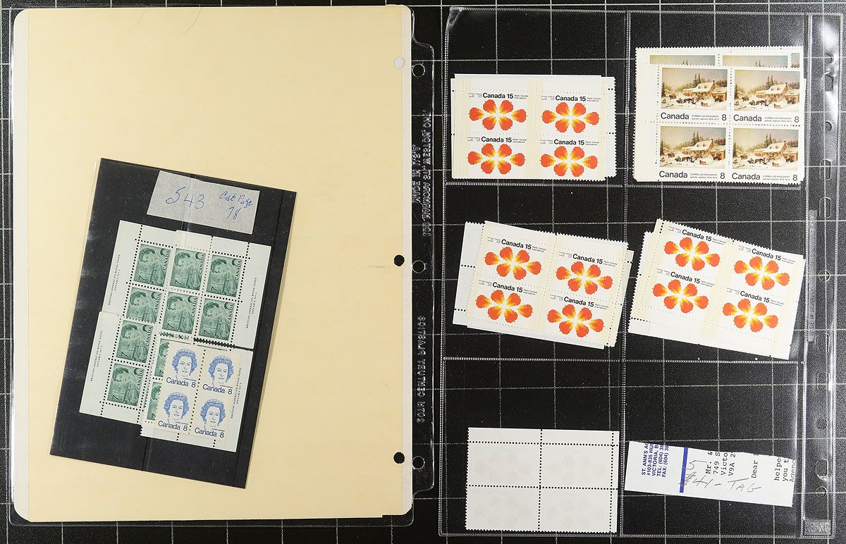 Collection of mostly mint, including blocks / multiples from the QV to QEII era, all arranged on about two dozen stockpages, withing a binder. Noted Admirals, Map Stamps, Jubilee Block, many 1935 10c RCMP, coils, $1.00 Vancouver Harbour singles and plate blocks, 1972 Earth Sciences, 1975/1976 Olympics high-values, Radio Canada, Suzor-Cote etc. Lots of value here, expect the early material to be a mix of Hinged/Never Hinged, with much of the later being Never Hinged. A great lot to keep what you need and sell the rest. Catalogue value would add up quickly here! Offered as received from a local estate. Estimate =