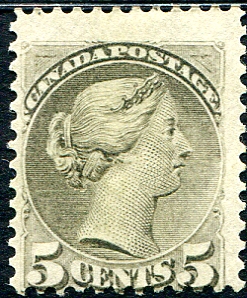 VG/Fine mint Never Hinged example of the 1876 issue 5c slate green Small Queen. A tough stamp to find Never Hinged. Comes with a 2011 Vincent Graves Greene certificate which states (in part) "No.38, mint, OG, NH, genuine in all respects". 2025 Scott Classic for NH US$2,250.00 =