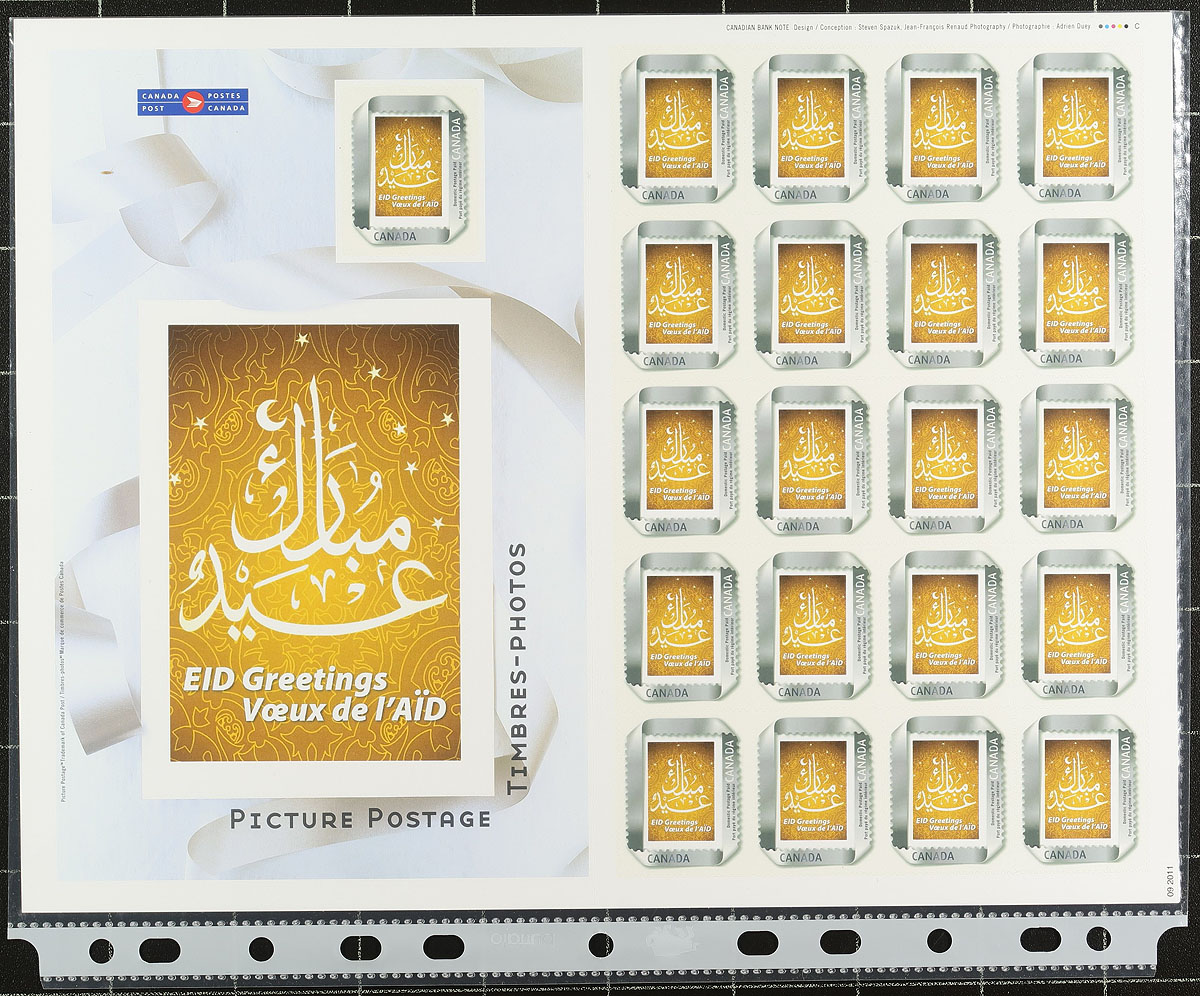 VF mint Post Office Fresh set of 2011 Diwali (set of two), 2011 EID (set of two), 2011 Hanukkah (set of two) and 2011 Winnipeg Jets (two of the three issued) Picture Postage panes of 21. The panes of PP1-PP6 are the Type 3 printings, PP8-PP9 are Type 4 printings, all dated "09 2011". These were only available in full panes directly from the Canadian Bank Note Company or Canada Post. Scarce modern material, overlooked by most collectors when issued. Undervalued in the catalogue (in our opinion). 2024 Unitrade =